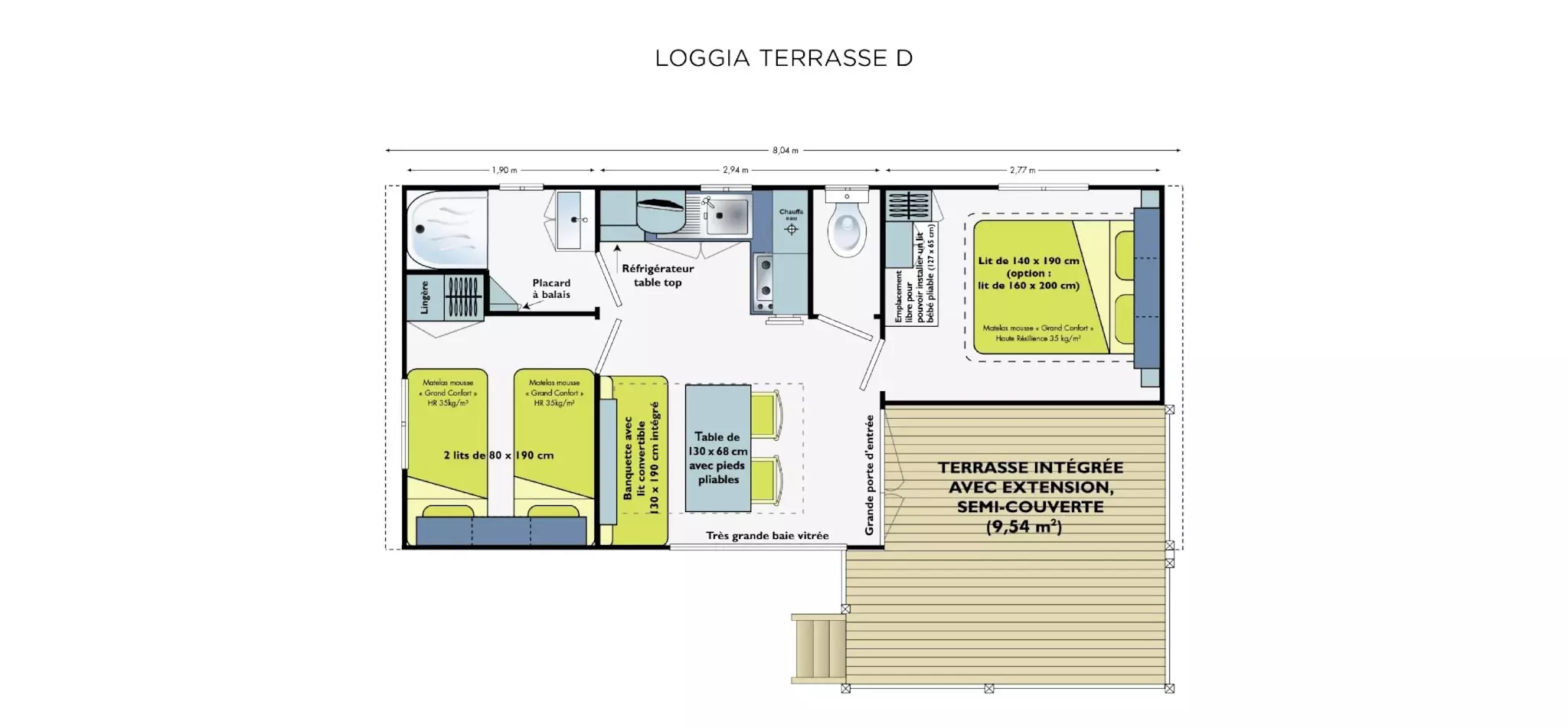 Mobilhome Loggia 25m² + terrasse - 2 chambres 4 personnes
