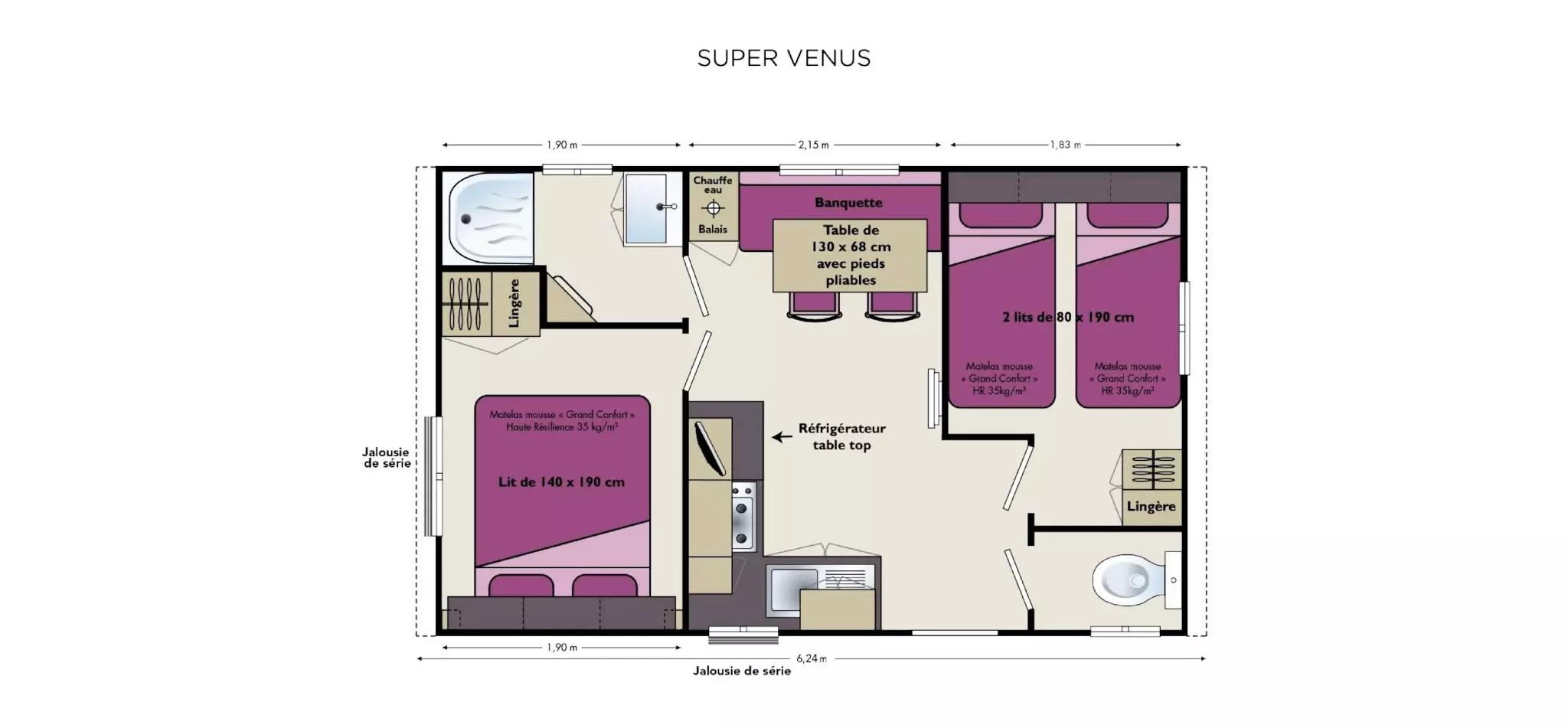 Idéal pour les petites familles, le principal atout du Super Venus est d'assurer un petit hébergement à prix réduit.
