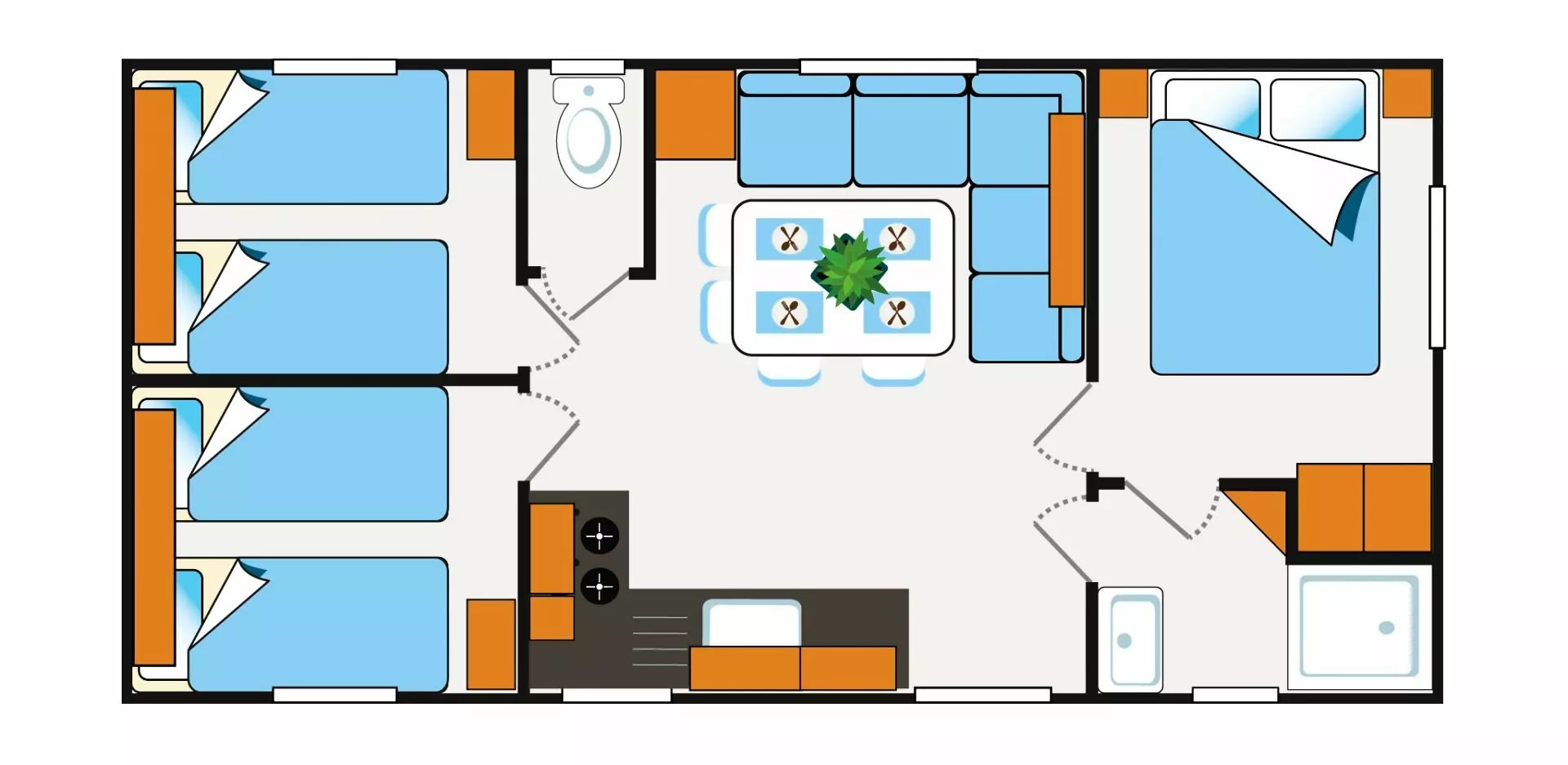 Mobil home Confort Liberté 4 pièces 8 personnes Climatisé avec :