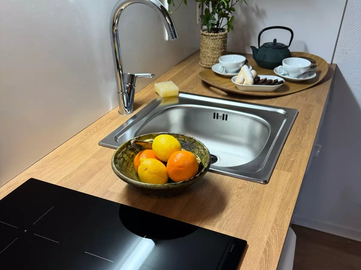 - Micro-ondes, réfrigérateur/freezer, cafetière, bouilloire, plaque de cuisson électriques, ustensiles de cuisine et vaisselle adaptée au nombre de personnes dans le logement