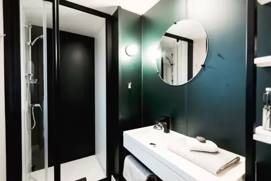- Coin cuisine : réfrigérateur/ congélateur, micro-ondes, cafetière, plaque de cuisson