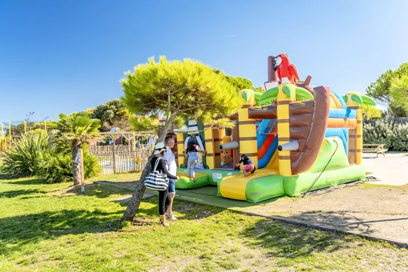 Les plus sportifs apprécieront notre terrain multisports, qui propose des espaces pour le football et le basketball. Les amateurs de convivialité se retrouveront sur notre terrain de pétanque, parfait pour des parties animées en famille ou entre amis. Les enfants pourront également s'épanouir dans le château gonflable et la structure de jeux avec pentaglisse, installés durant la haute saison.