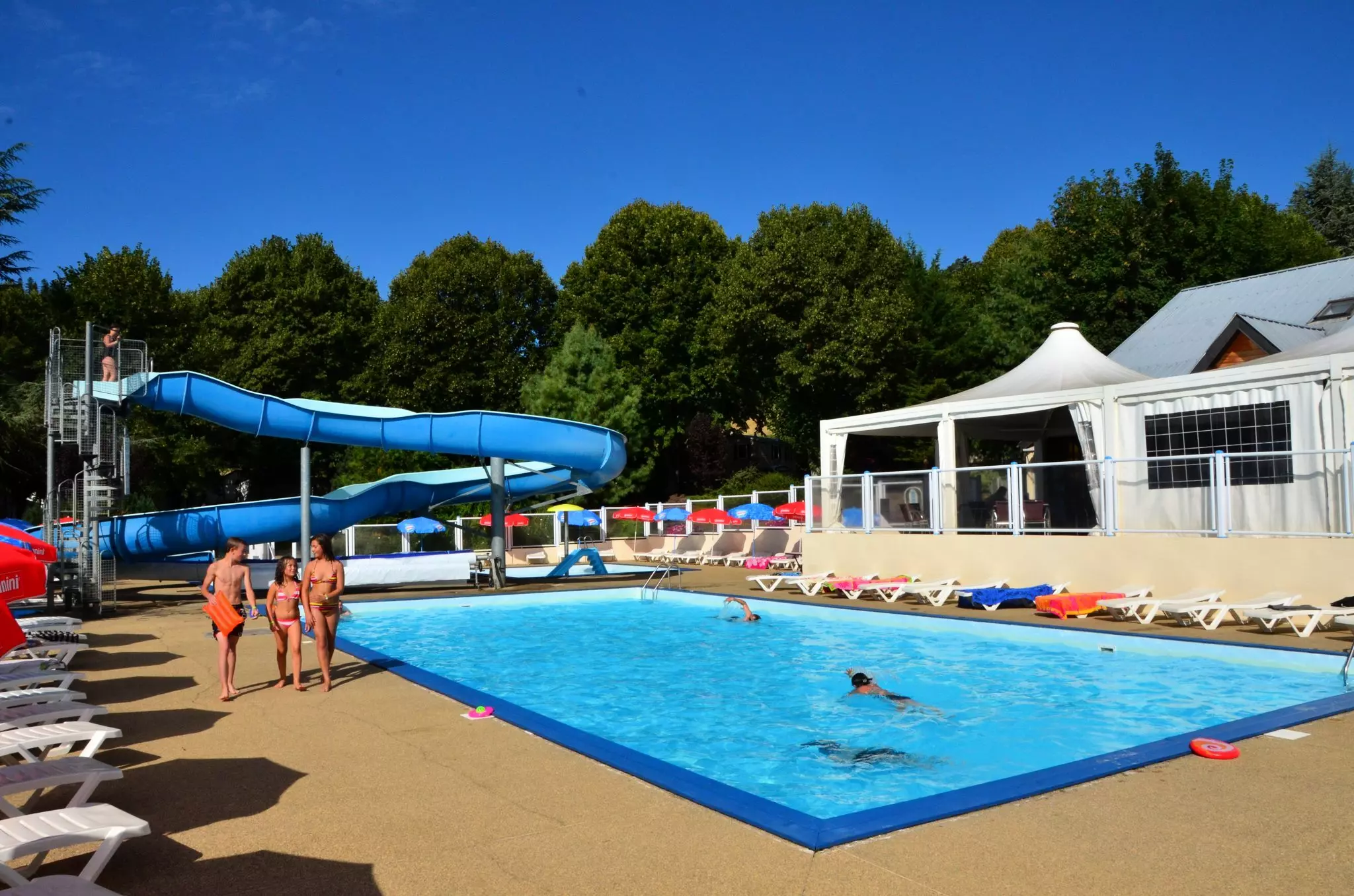Dans un environnement sécurisé et agréable, nous vous proposons de nombreux chaises longues et parasols ainsi qu'un espace herbeux où étendre votre drap de bain. Certains auront envie d'un bon bouquin ou d'un magazine pendant que d'autres iront à l'assaut du pentaglisse ou de la pataugeoire.