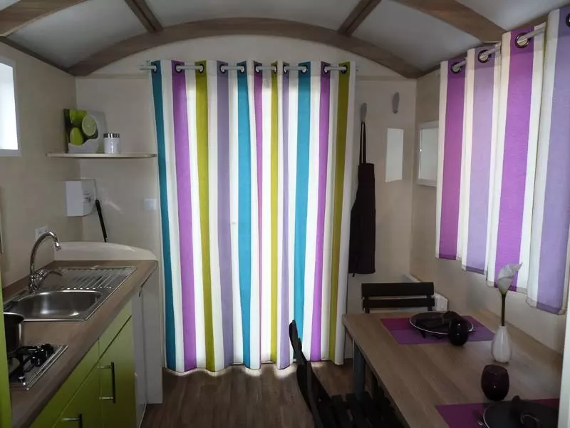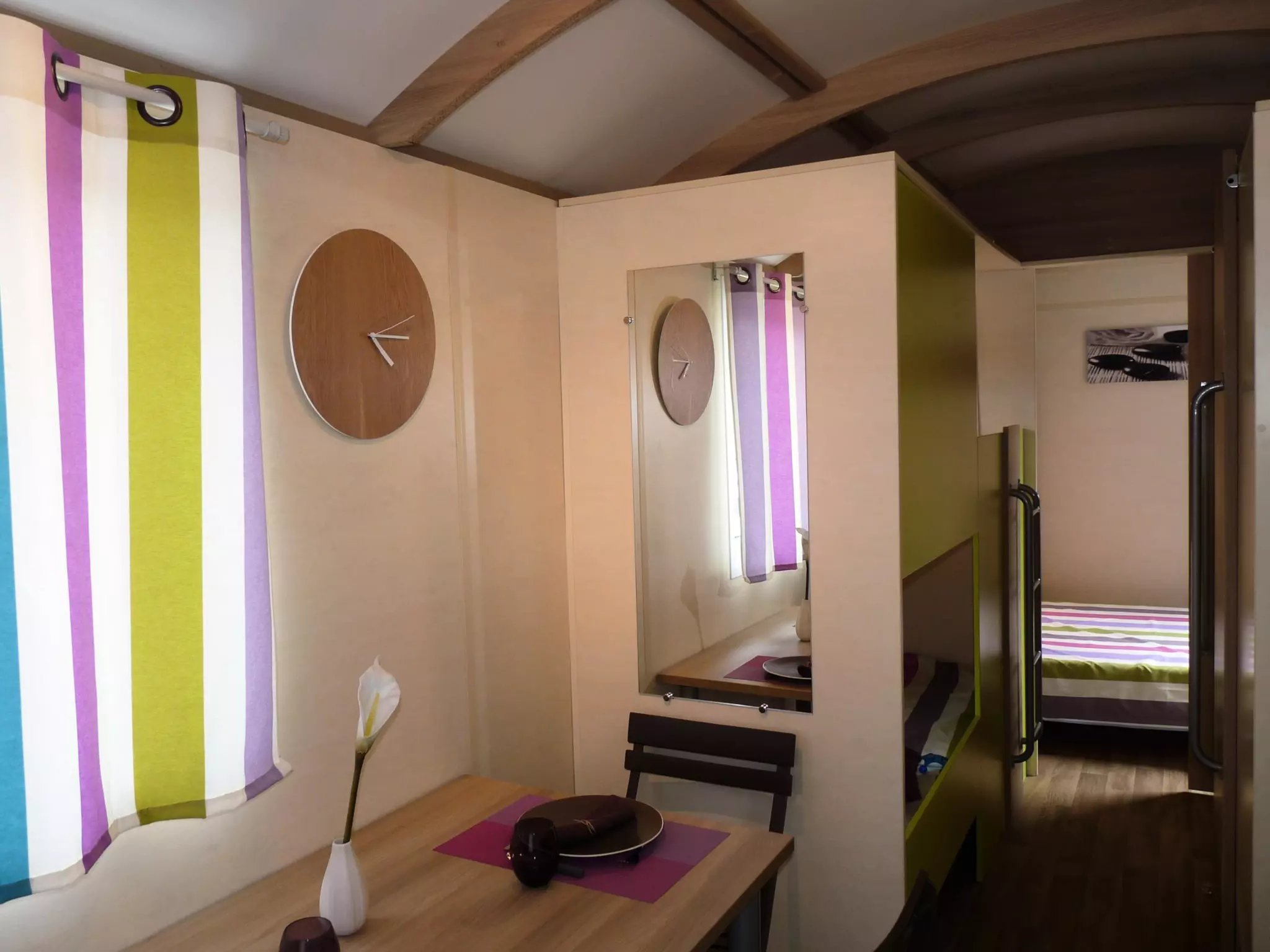 Sympathique et atypique mode d'hébergement qui fera le bonheur des enfants dans leurs couchettes superposées et des parents dans leur chambre séparée. Tout le confort est prévu, afin de vous faire apprécier votre séjour.