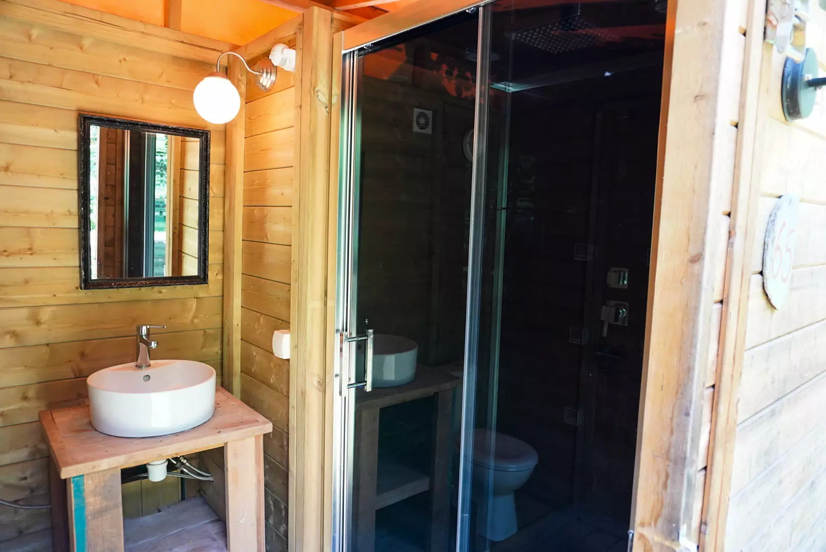 Ce camping avec des installations sanitaires privées est situé sur les emplacements 39 à 42, où vous avez vos propres installations sanitaires privées, afin que vous puissiez les utiliser en toute tranquillité et intimité.