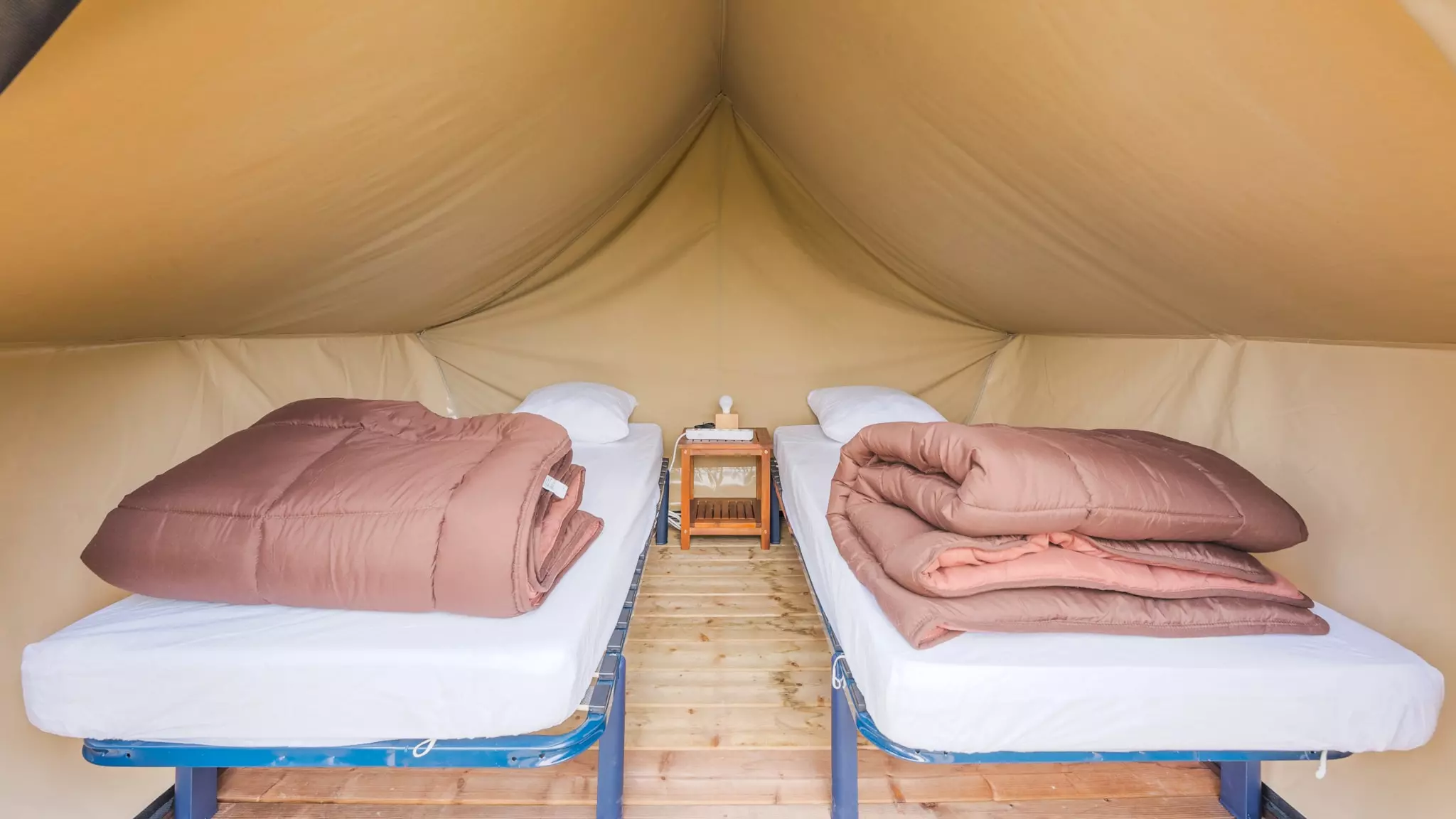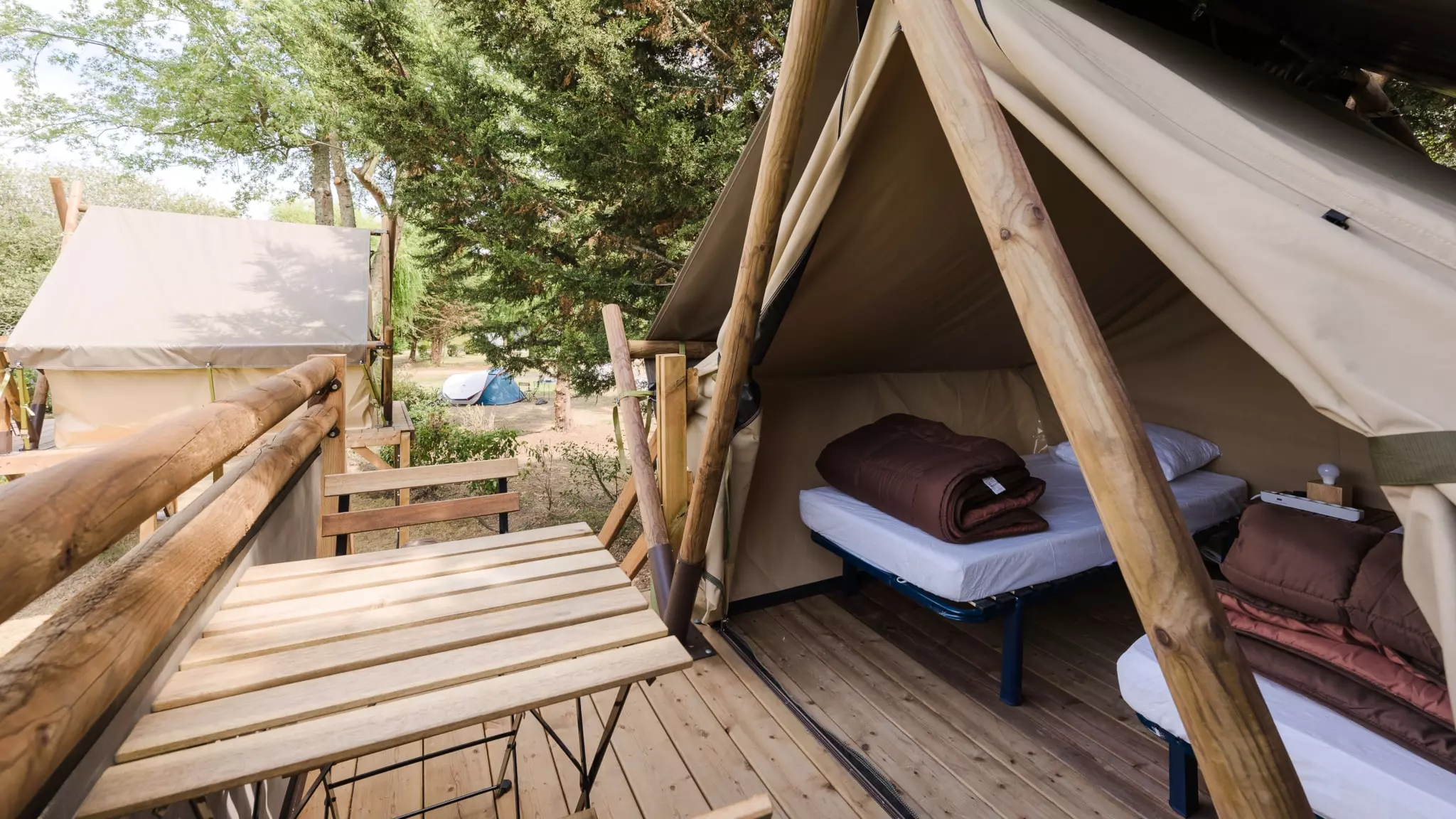 La tente se compose de 2 lits simples et d'une petite terrasse. Pas de cuisine ni de sanitaires.