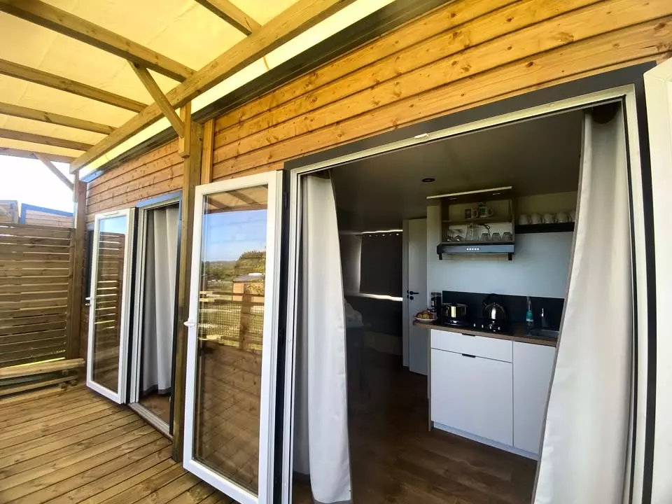 Notre Slow Lodge fait partie de la gamme insolite de notre camping. Avec sa structure en bois et ses murs en toiles, il est le parfait équilibre entre robustesse et originalité. Équipé d'une cuisine, d'une belle pièce de vie, de 2 chambres et d'une terrasse, idéale pour profiter pendant votre séjour, il est également très confortable jusqu'à 5 personnes. Cet hébergement ne comporte pas de sanitaires, vous aurez accès au bloc sanitaire du camping.