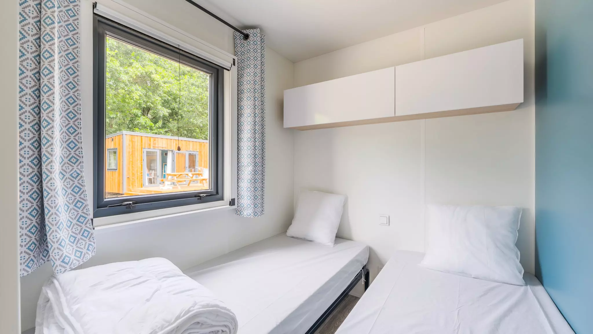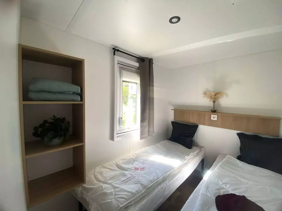 Le cottage 2 chambres comporte tout le confort nécessaire pour vous accueillir pendant votre séjour au camping. Il se compose de 2 chambres (1 avec 1 lit double et 1 avec 2 lits simples) et peut accueillir jusqu'à 4 personnes. Vous trouverez également une cuisine équipée et une salle de bain ainsi qu'une terrasse découverte.