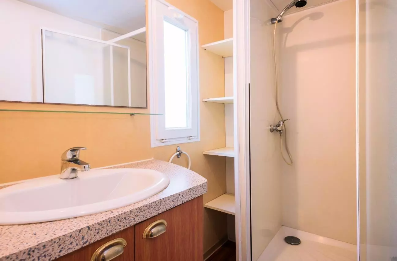 Un bloc sanitaire commun moderne et bien entretenu est à votre disposition, avec douches spacieuses et WC propres accessibles facilement depuis votre emplacement ou hébergement.
