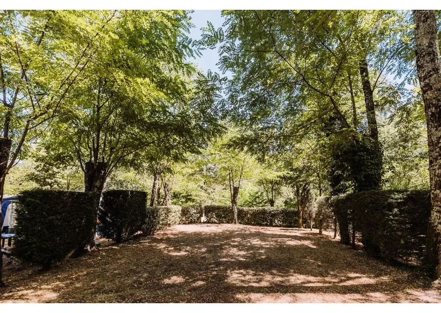 Beaux emplacements de camping en terrasse ombragés et pour votre confort 4 blocs sanitaire répartis sur le camping. Chien accepté en laisse.