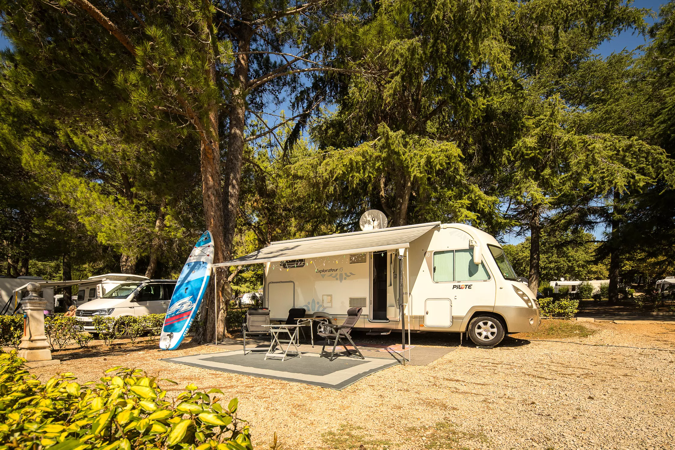 Les emplacements standards, d'une superficie de 60 à 100 m², sont équipés de branchements électriques, idéals pour accueillir un camping-car ou une tente.