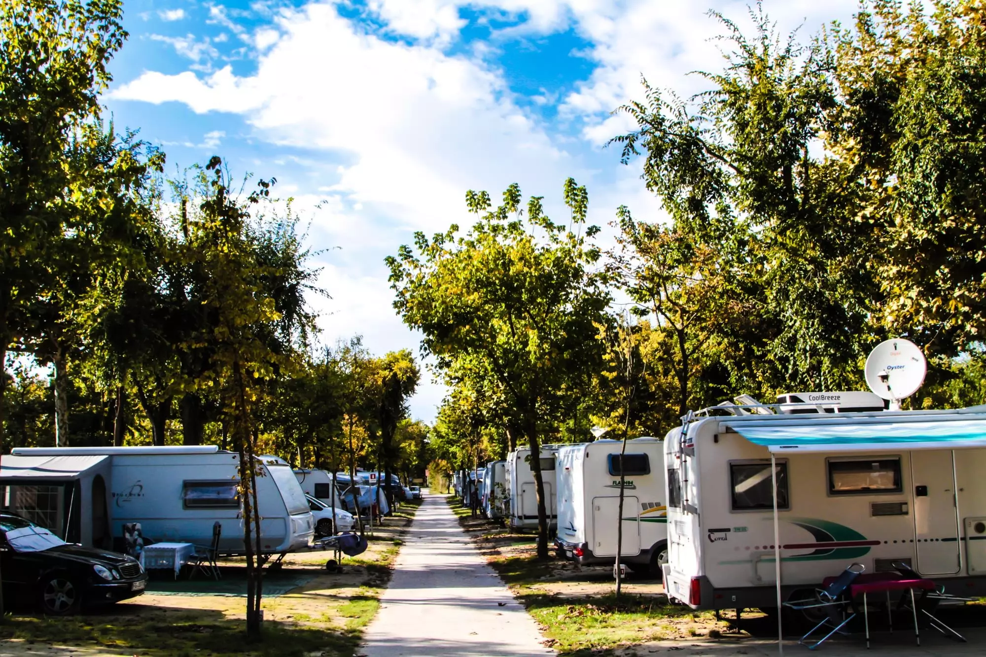 Grands emplacements d'environ 70-85 m² pour caravanes, camping-cars et tentes, disponibles à l'ombre ou au soleil. Les animaux domestiques sont autorisés sur certains, sur demande.