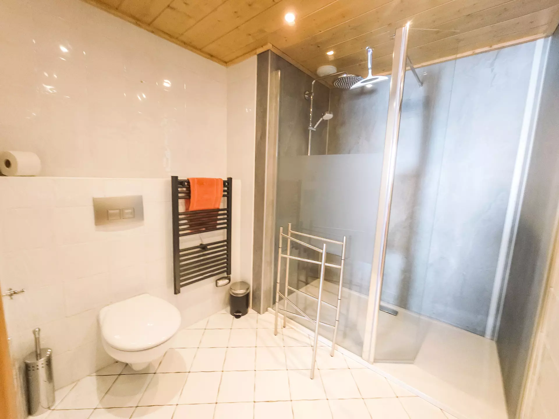 Chambre 3 : lit double (180x200cm), salle de bains attenante (lavabo, douche, sèche -serviettes, toilettes)