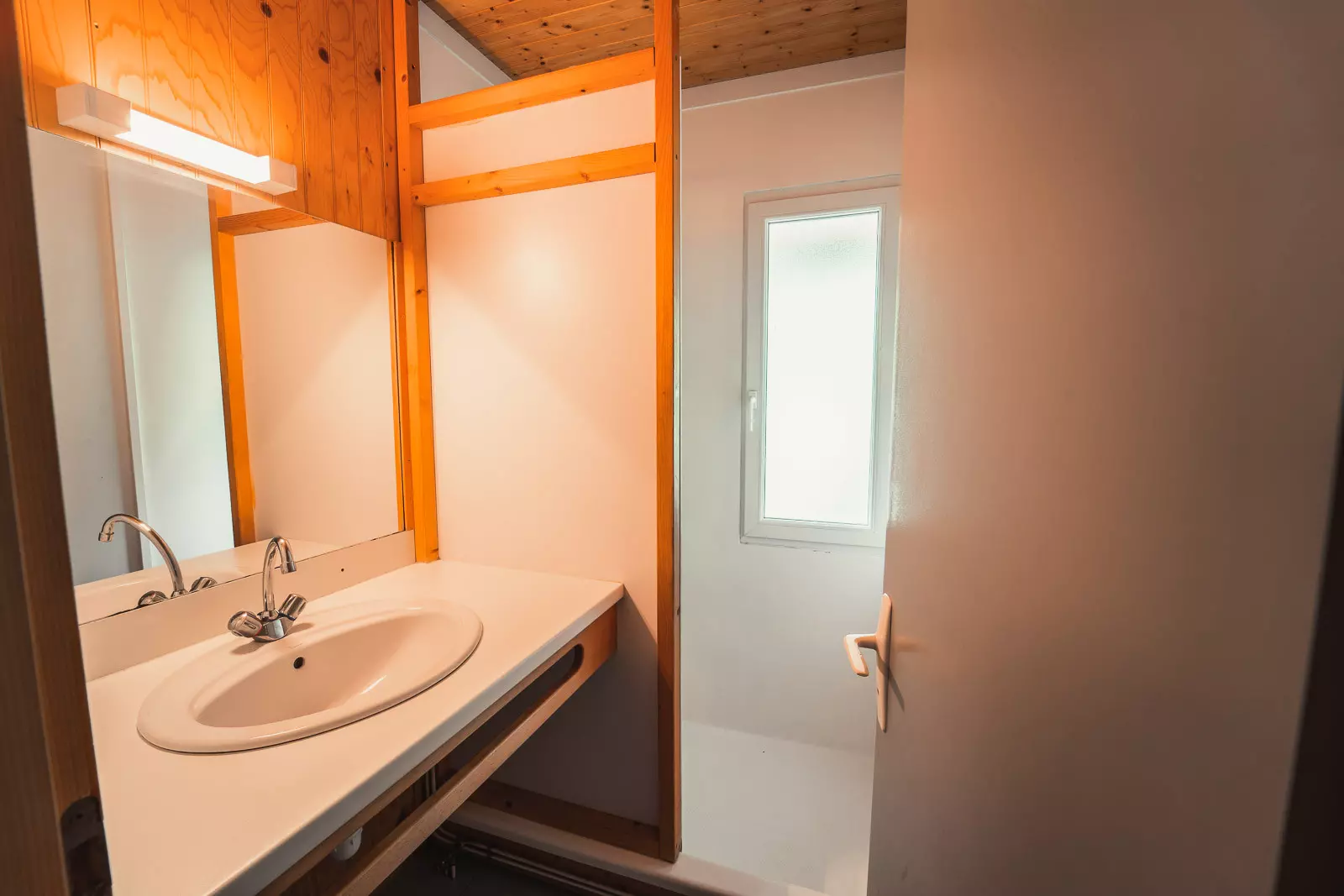 Chalets de 28m² pour 4 à 5 personnes disposant d'un coin cuisine (réfrigérateur/congélateur, plaques électriques, four micro-ondes, lave-vaisselle, cafetière), d'un séjour (canapé-lit simple et télévision), d'une chambre avec un lit double (140x190), d'une chambre avec deux lits simples (90x190), d'une salle d'eau, d'un wc indépendant et d'une terrasse équipée d'un salon de jardin et d'un barbecue. Wifi disponible à l'accueil.