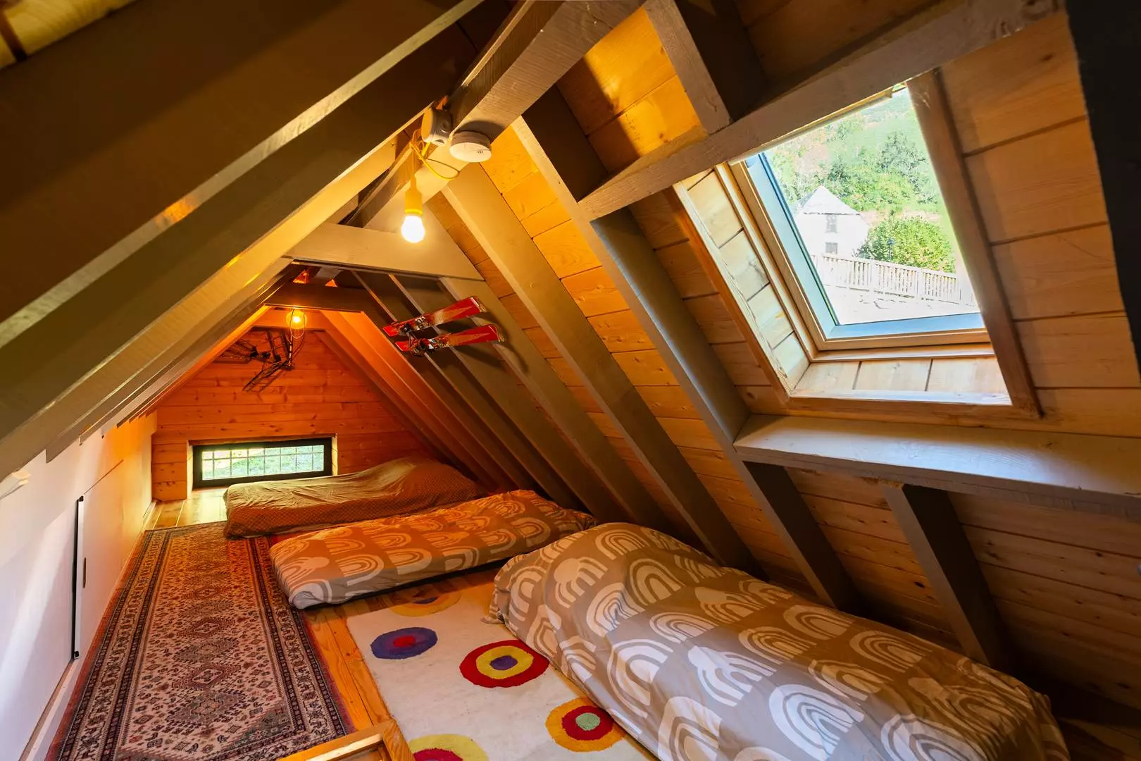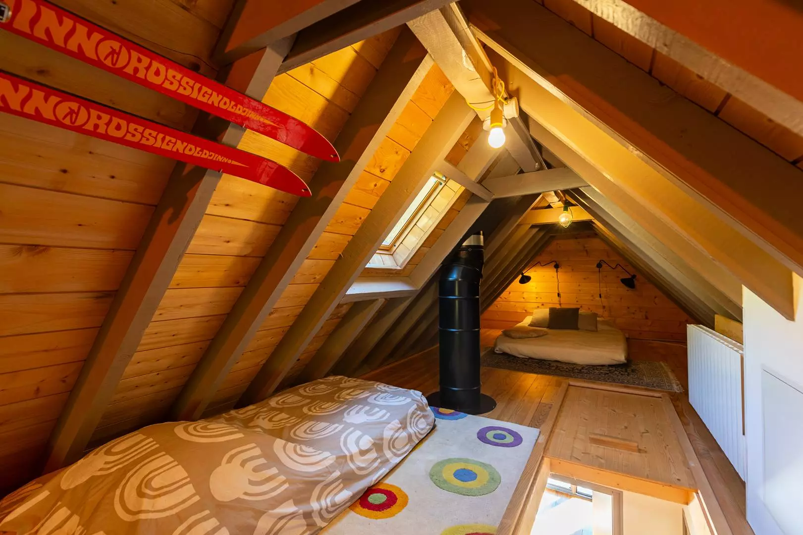 Dortoir spacieux composé de 2 lits doubles et 2 lits simples, parfait pour enfants ou groupe d'amis