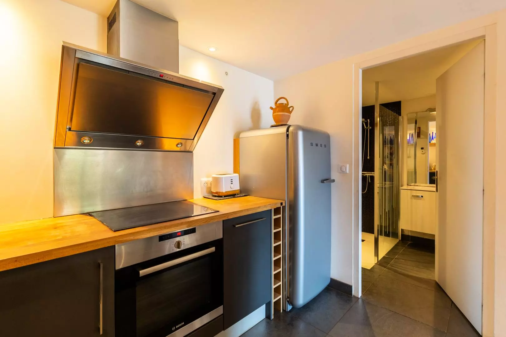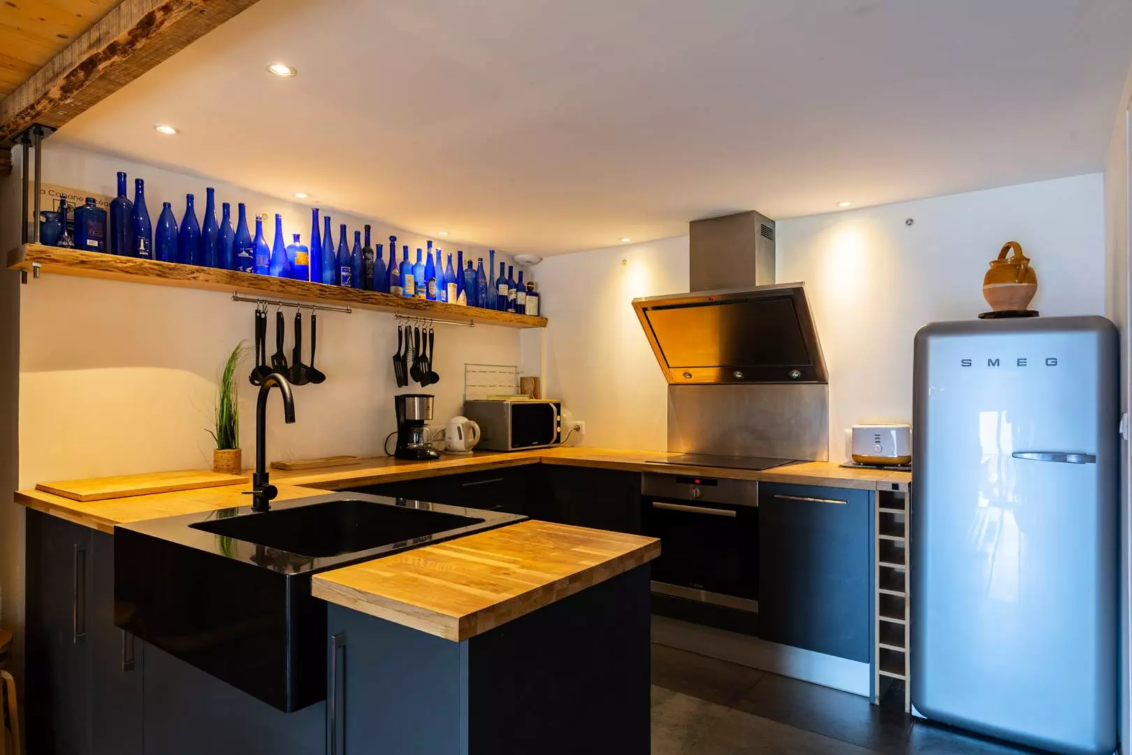Cuisine rénovée entièrement équipée, ouverte sur l'espace de vie