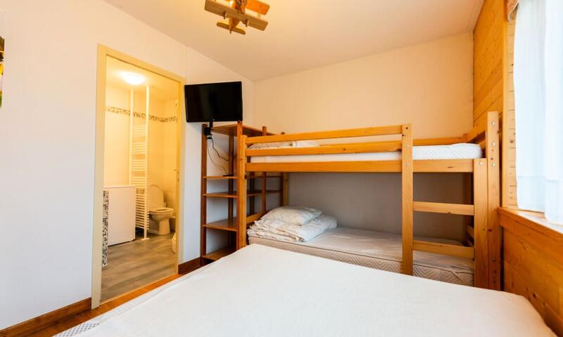 - une chambre avec un lit double, un lit superposé et un lit pour bébé ;