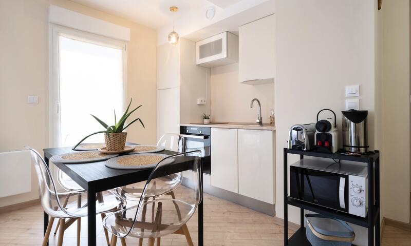 Le logement comprend une kitchenette entièrement équipée pour vos repas, ainsi qu’une salle de bain moderne avec WC. Situé au 2ᵉ étage d’une résidence calme avec ascenseur, il offre tout le nécessaire pour un séjour serein. Un parking gratuit est inclus et le stationnement est également gratuit dans la rue, pour plus de tranquillité.