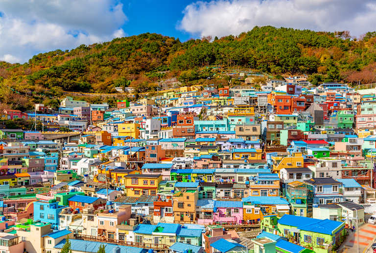 - Village artistique de Gamcheon. Un hameau discret, Gamcheon s'est d'abord fait connaître pour avoir accueilli des réfugiés nord-coréens pendant la guerre de Corée. Puis en se recouvrant de fresques pittoresques. Cela lui a permis de survivre à la bulle immobilière des années 90. Aujourd'hui, Gamcheon est un quartier animé avec des cafés, des boutiques et des ruelles populaires.