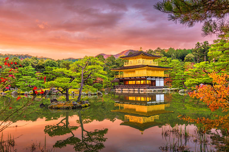 Suggestions de visites : Ne partez pas de Kyoto sans avoir vu le superbe sanctuaire shinto Fushimi Inari-taisha et ses milliers de toriis rouges au milieu de la forêt ; Vous pourrez ensuite faire la promenade dans le sud de Higashiyama pour y voir le fameux temple de Kiyomizu-dera, le parc de Maruyama-koen, ou le temple Chion-in, entre autres. Un peu plus au nord, ne manquez pas le Nanzen-ji, célèbre temple zen. Vous pouvez terminer vos visites par le Pavillon d’Or (Kinkakuji), classé au Patrimoine mondial de l’UNESCO et rejoindre ensuite le temple Ninna-ji par la rue Kinukake-no-Michi, en passant par le jardin de pierre Ryoan-ji.