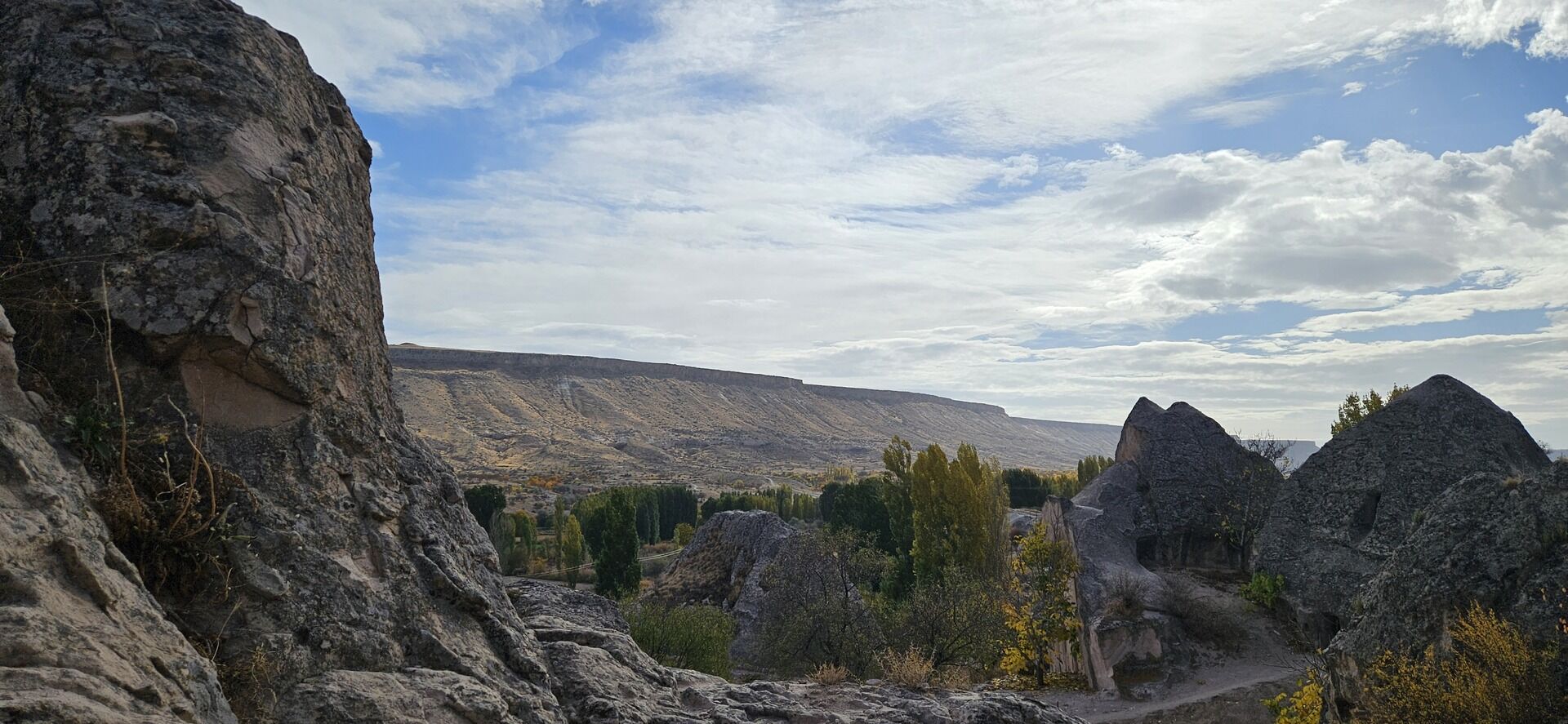 Temps libre dans le village d’Ortahisar, "la forteresse du milieu", petite ville pittoresque bâtie autour d'un gigantesque piton de tuf dont les parois sont percées de nombreuses ouvertures, et où les éboulements ont mis à jour les pièces intérieures. Du haut de son piton, le village d'Ortahisar domine un paysage creusé de vallées fertiles où mûrissent légumes et fruits que les paysans vous proposent avec générosité.