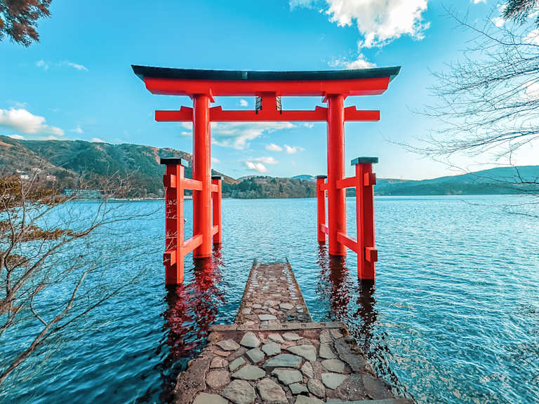 Hakone est une célèbre station thermale du parc national Fuji-Hakone-Izu, prisée par les Tokyoïtes en quête d'évasion. Nichée sur un ancien volcan, elle offre des paysages magnifiques, avec un lac entouré de montagnes et le mont Fuji en toile de fond. Profitez des onsens et des sentiers de randonnée pour une expérience revitalisante en pleine nature.