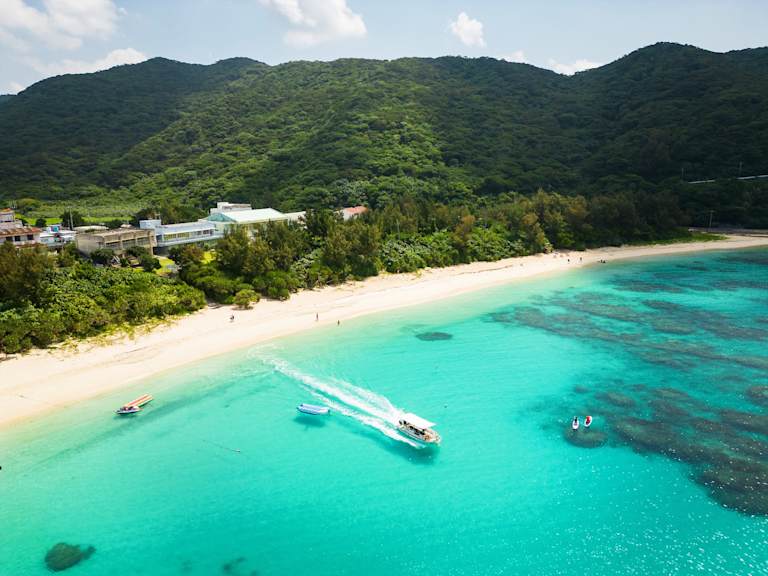 Si vous aimez les plages paradisiaques, l’archipel de Kerama composé de ses 5 îles (Tokashiki-jima, Zamami...) saura vous satisfaire. Accessible très facilement en ferry depuis le port de Naha, en moins d’une heure il est possible de faire de nombreuses activités telles que le snorkelling, le parasailing, de la plongée sous-marine ou bien encore du kayak ! Il est également possible de simplement profiter des longues étendues de plages de sable blanc et la mer cristalline car l’archipel regorge de faune et de flore magnifiquement préservées.