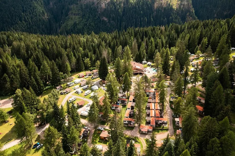 Le Val di Fiemme Easy Camping Village est immergé dans la nature des Dolomites, ouvert aussi bien en été qu'en hiver.
