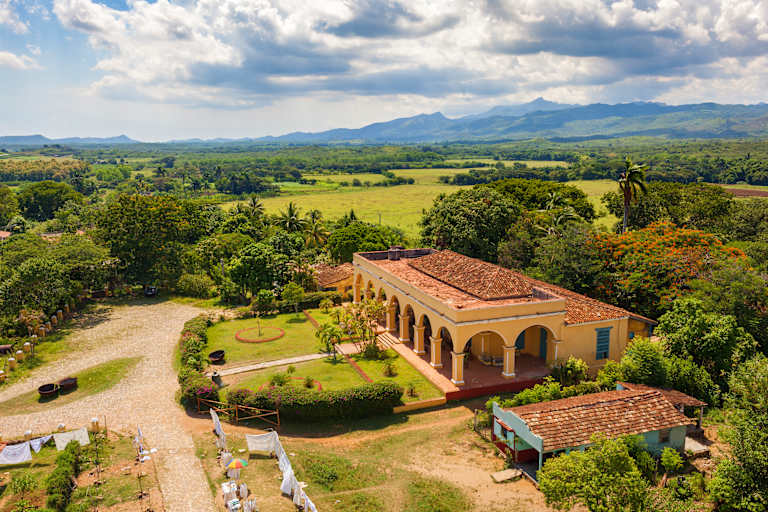 Petit-déjeuner. Partez à la découverte de Trinidad via la belle route côtière. Visitez le musée Palacio Cantero et son exposition historique intéressante, Dégustez le cocktail à base de miel, la Canchanchara, au célèbre bar du même nom. À la périphérie de Trinidad se trouve le domaine Manaca Iznaga avec sa tour particulière, vous profiterez de la vue et d'un déjeuner local.