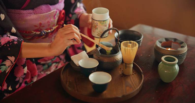 Ensuite, passez la porte d’un authentique salon de thé, où vous serez accueilli(e) par un maître de thé pour une cérémonie du thé traditionnelle. Observez la préparation minutieuse du matcha, un thé vert vibrant servi dans des poteries artisanales. Savourez également un wagashi, une pâtisserie japonaise raffinée, qui accompagne parfaitement le thé mousseux.