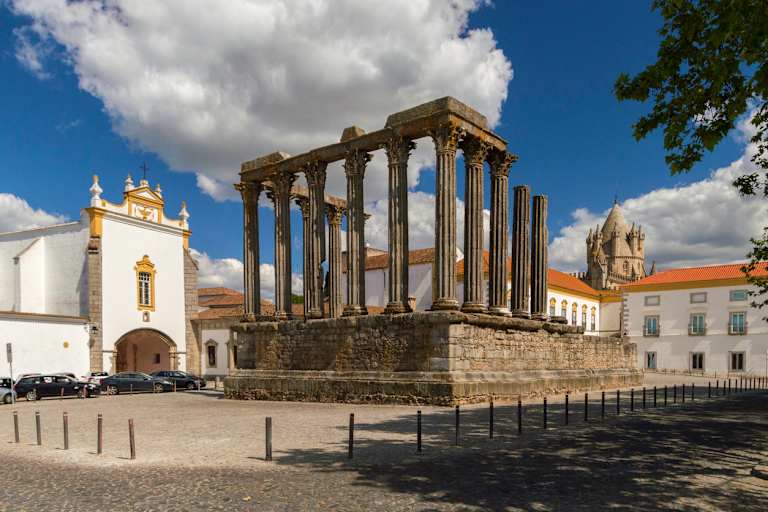 Profitez de votre petit déjeuner à l'hôtel et préparez-vous à continuer à explorer l'Alentejo. Vous pouvez vous rendre en voiture à la plage de Comporta, située au sud de Troia. Détendez-vous sur la plage avant de poursuivre votre route vers le Cais Palafitico da Carrasqueira, un chef-d'œuvre de l'architecture populaire. Ce port, construit sur des pieux et des planches de bois irréguliers, est une destination prisée pour la photographie. Le quai et ses amarres sont utilisés par les bateaux de pêche locaux. Profitez de l'atmosphère paisible de cet endroit rural avant de reprendre la route pour Évora. Évora représente un héritage culturel précieux que l'UNESCO a classé au patrimoine mondial de l'humanité. Son centre historique, dont l'enceinte extérieure, avec ses rues étroites d'origine mauresque contrastant avec les places baignées de lumière, possède deux millénaires d'histoire. N'hésitez pas à découvrir la ville et à vous en inspirer.