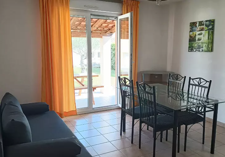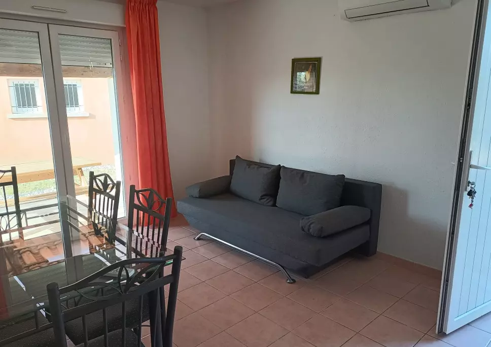 Le séjour climatisé vous permettra de profiter d'un intérieur agréable même en été. Il est équipé d'une banquette convertible pour 2 personnes.