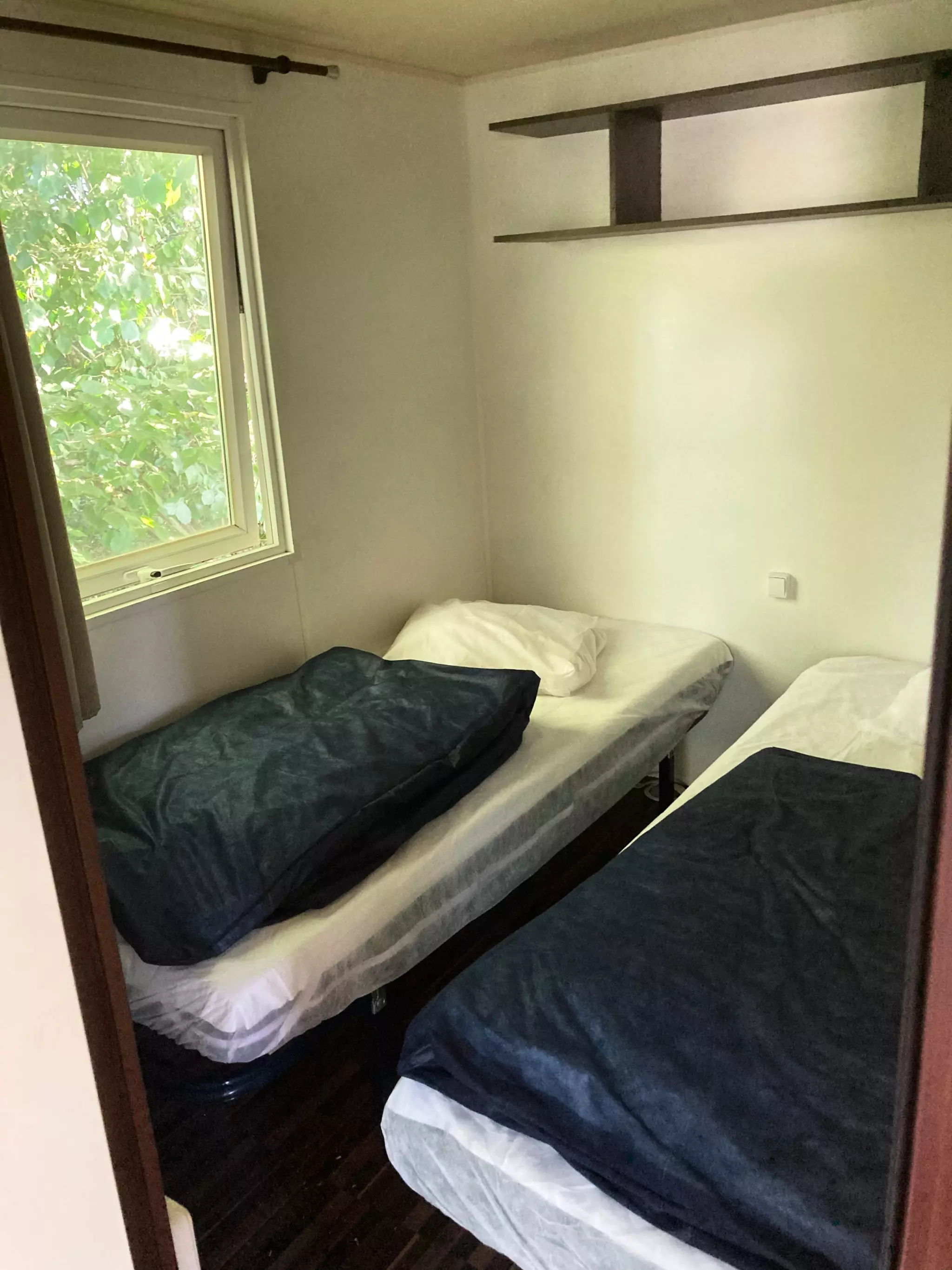 Le mobilhome compte deux chambres : une chambre parentale avec un lit double 140*190 et une chambre avec deux lits simples 90*190.