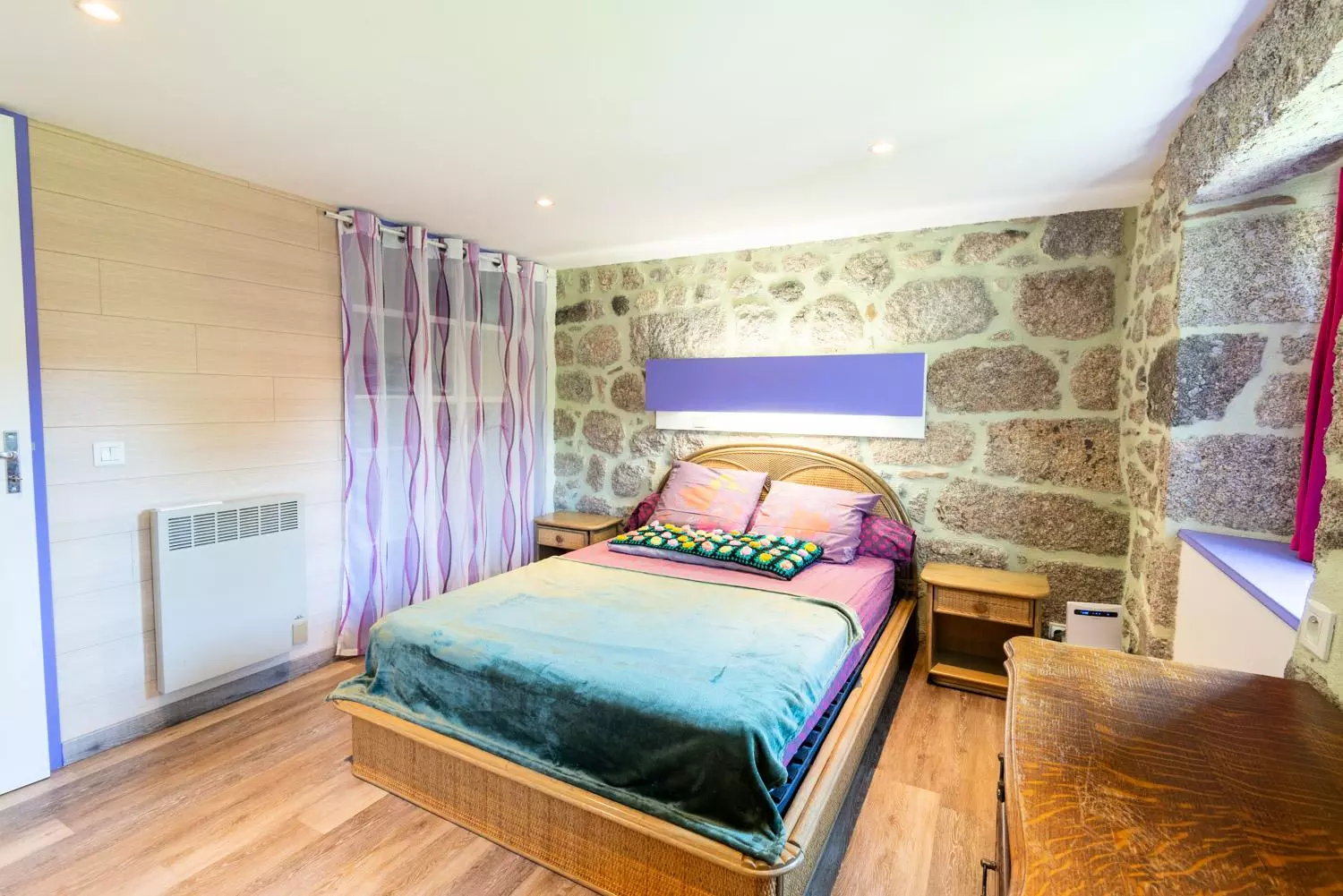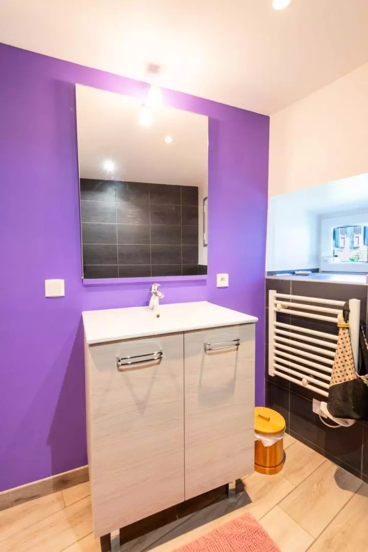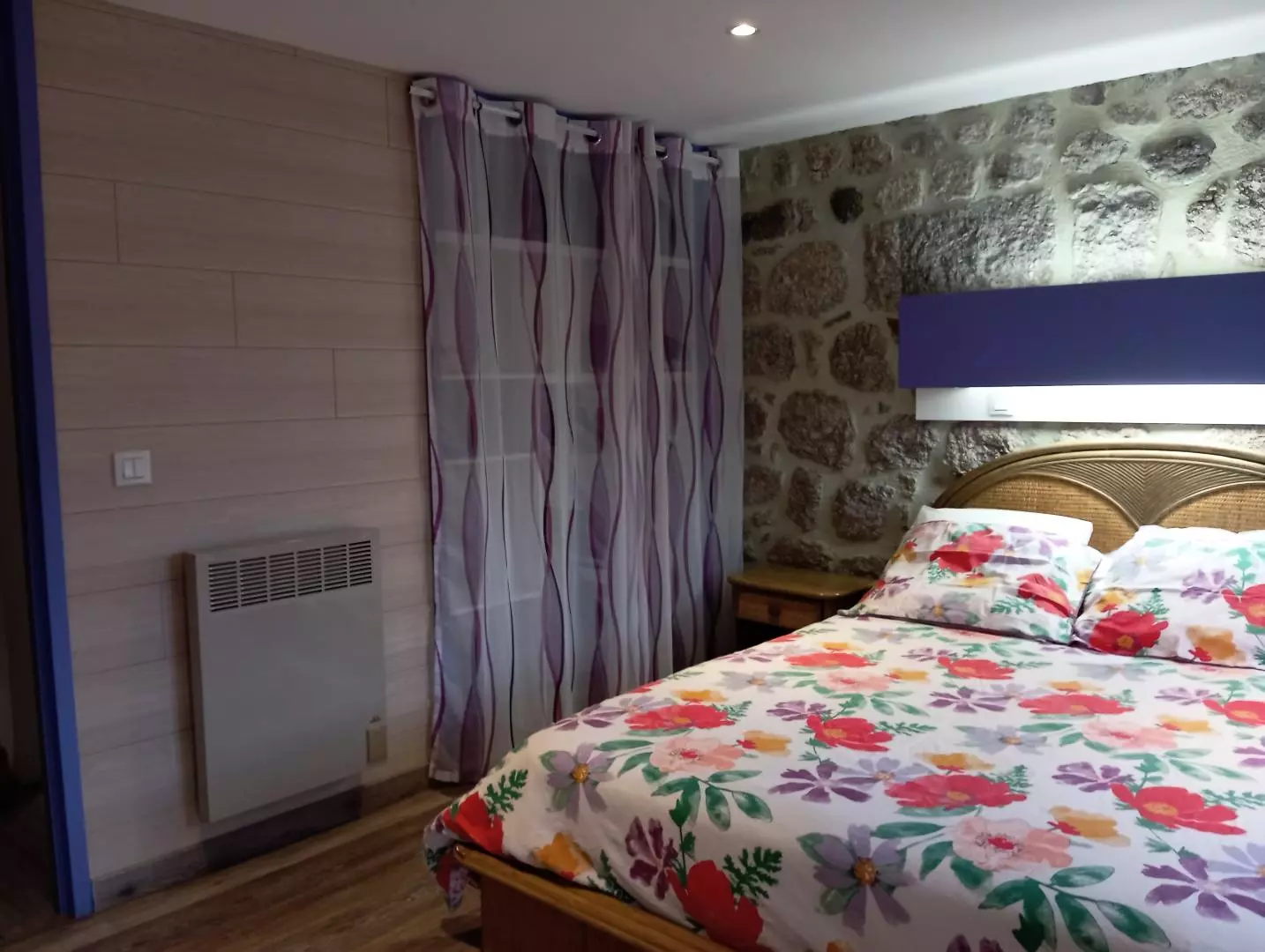 A l'étage, la chambre avec un lit double 140*190 et la salle d'eau avec wc.