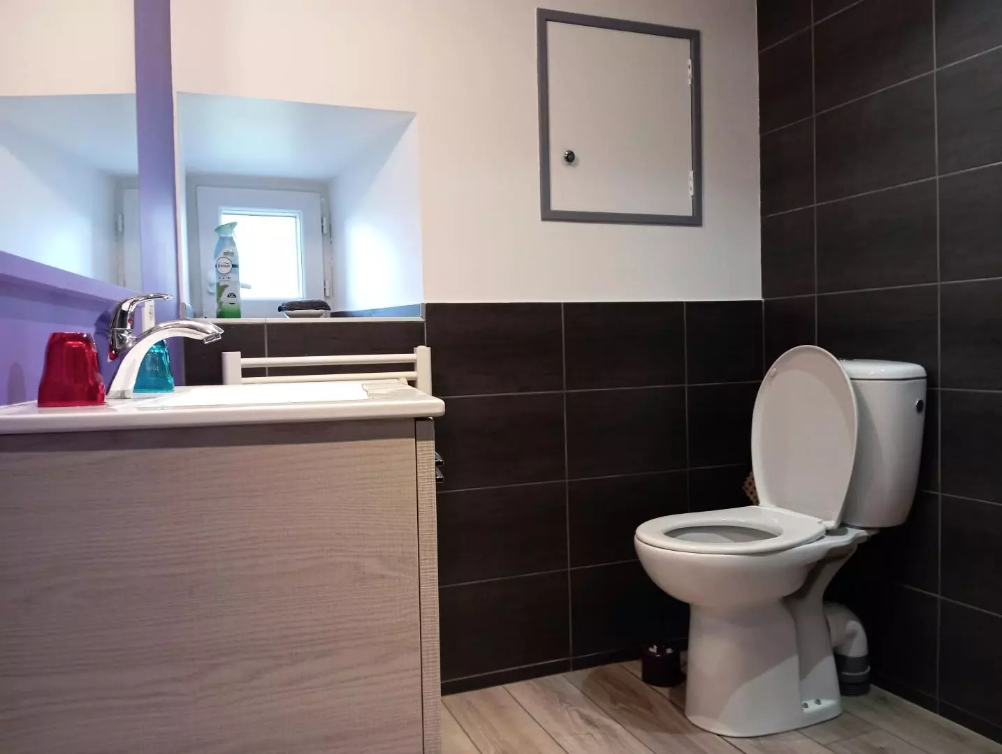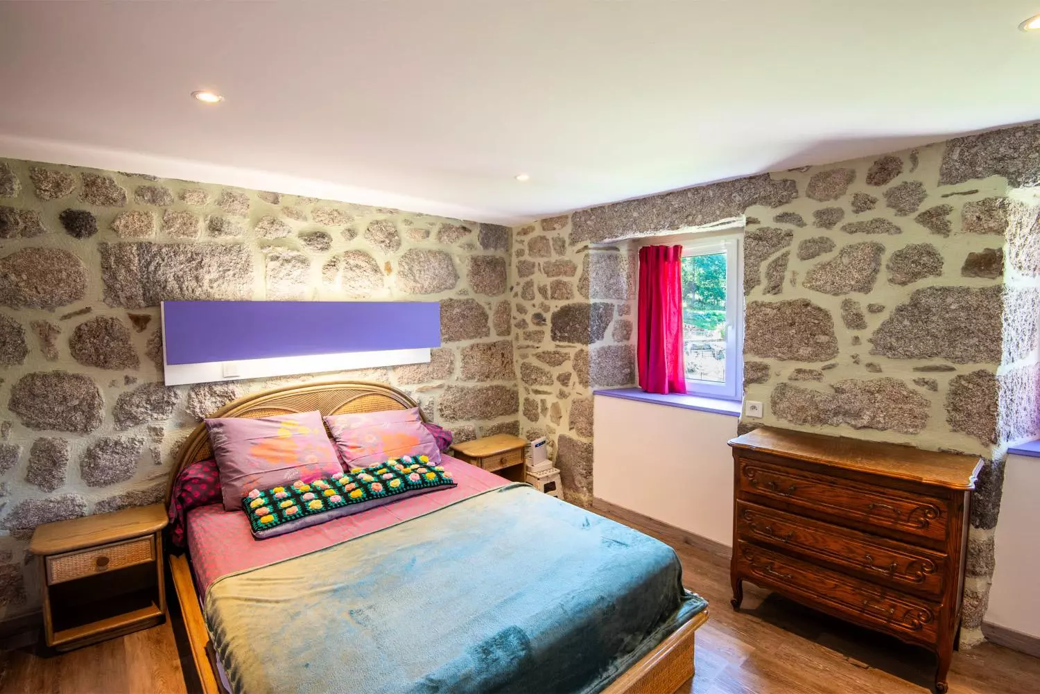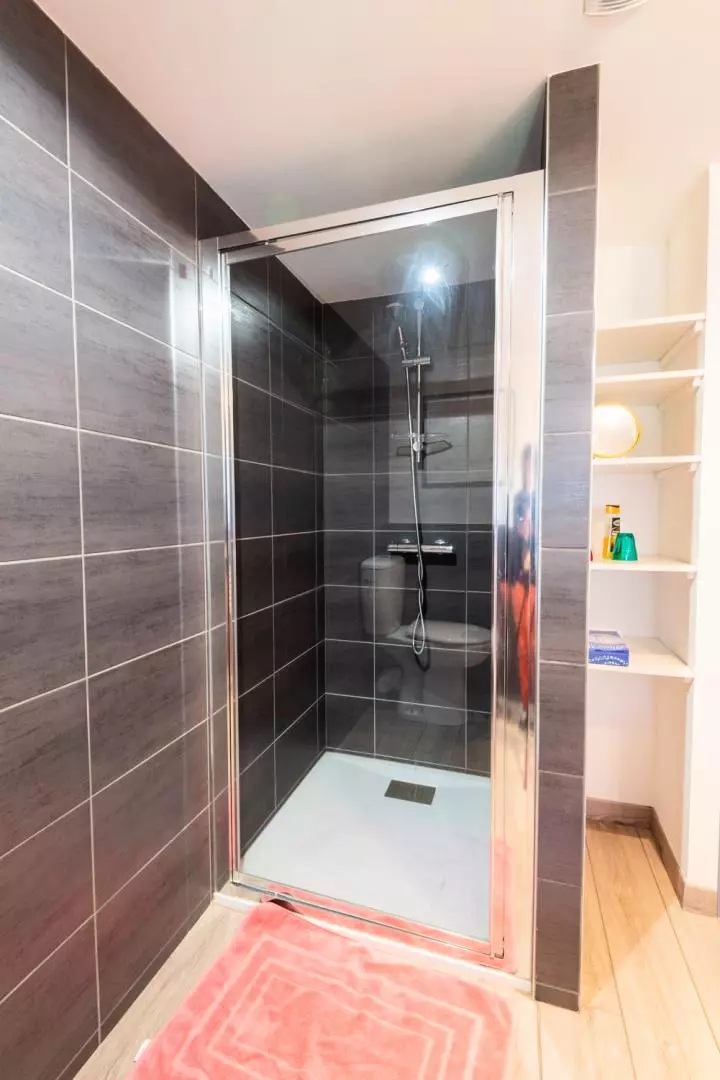 A l'étage, la chambre avec un lit double 140*190 et la salle d'eau avec wc.