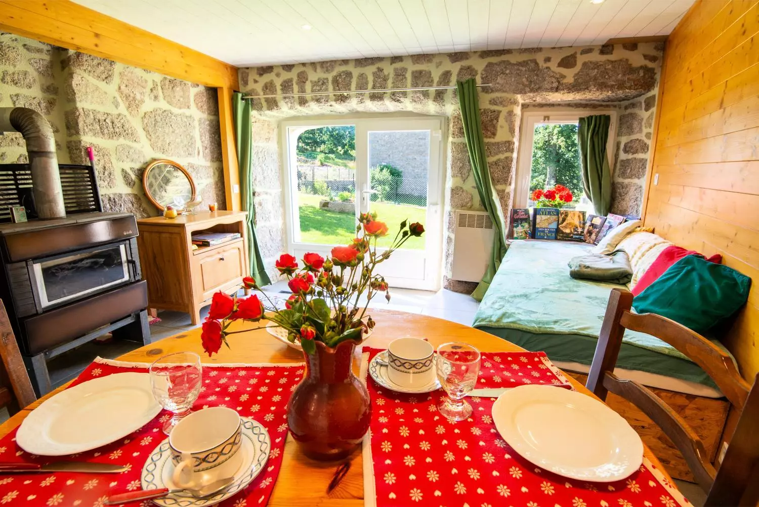 Le prix ne comprend pas : Le chauffage selon consommation, les draps (12€/lit), le linge de toilette (5€/personne), la prestation ménage de fin de séjour (30€), le complément de bois au-delà du quota fourni.