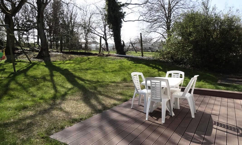 Terrain avec pelouse non clos. Portique.
