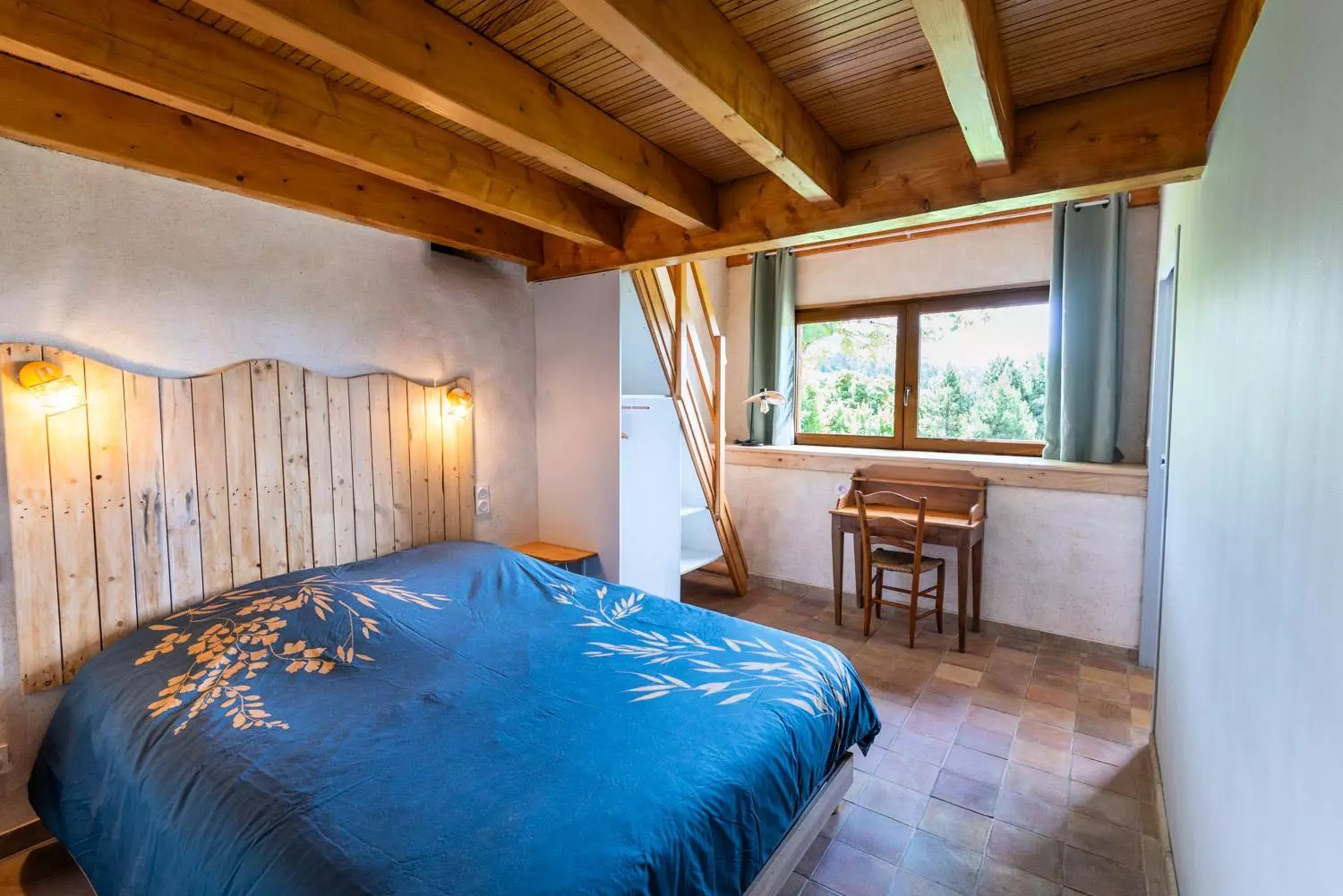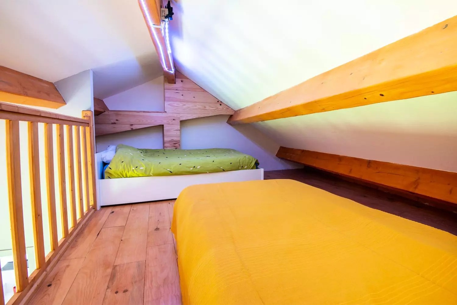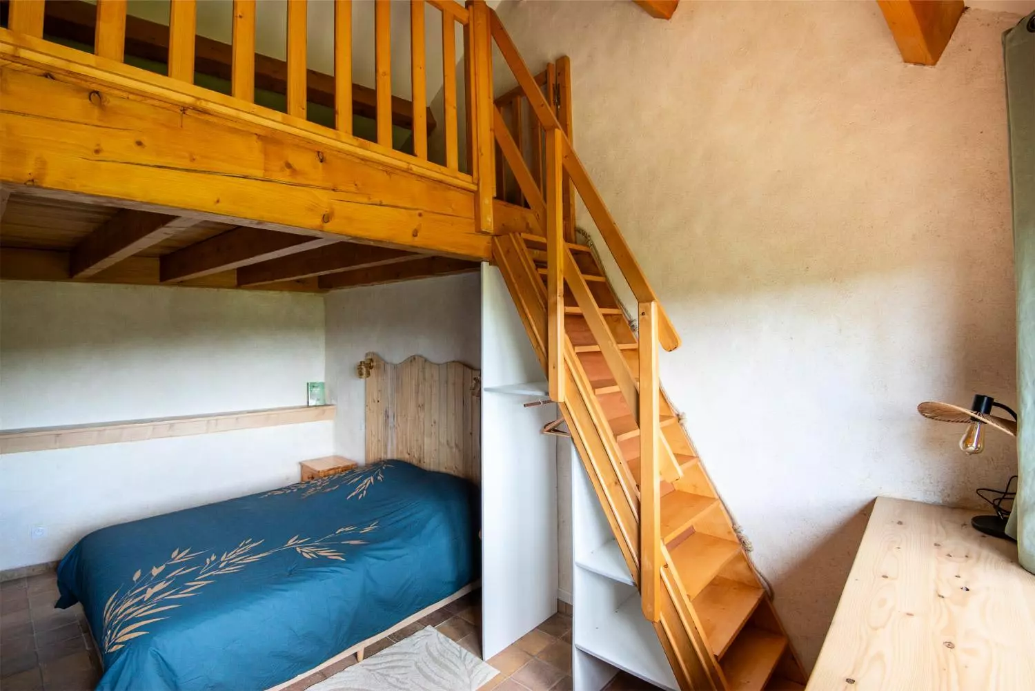La literie de qualité est confortable : un lit double en 160 x 200 et dans la mezzanine à plafond bas : deux lits en 90. Et aussi lit d'appoint confortable en 90x200 plus lit bébé.