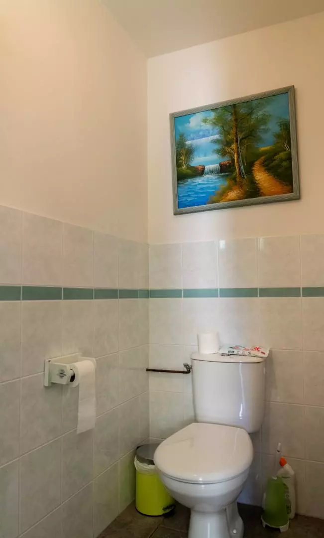 Au rez-de-chaussée : grand séjour lumineux avec salon (télévision), WIFI, cuisine équipée (lave-vaisselle, micro-ondes, four, combiné-congélateur), WC indépendant, garage.
