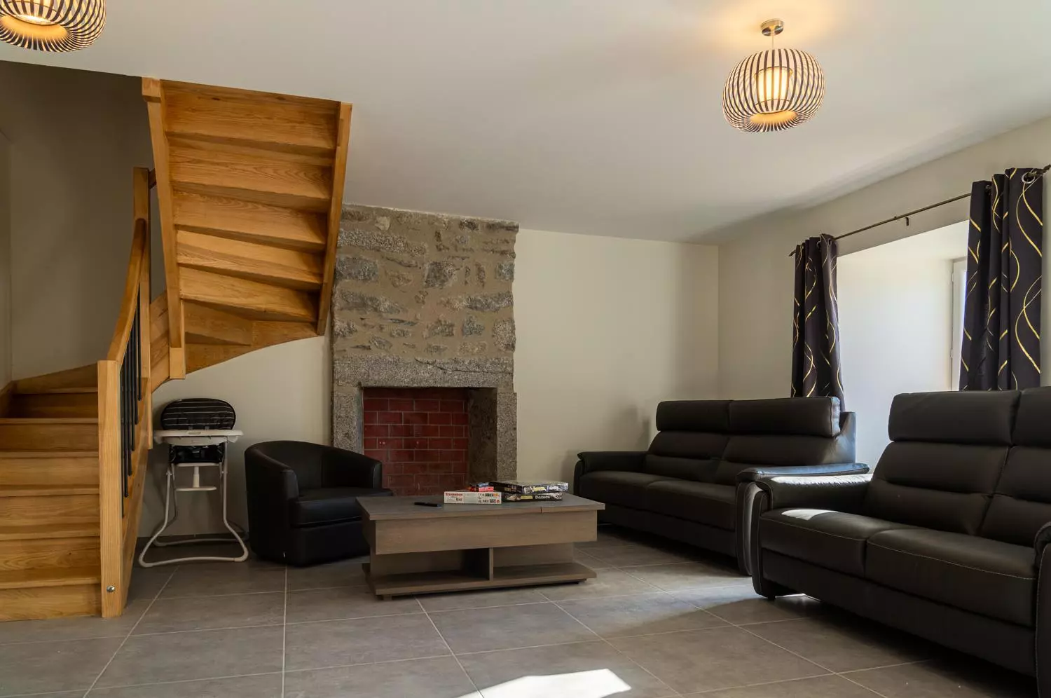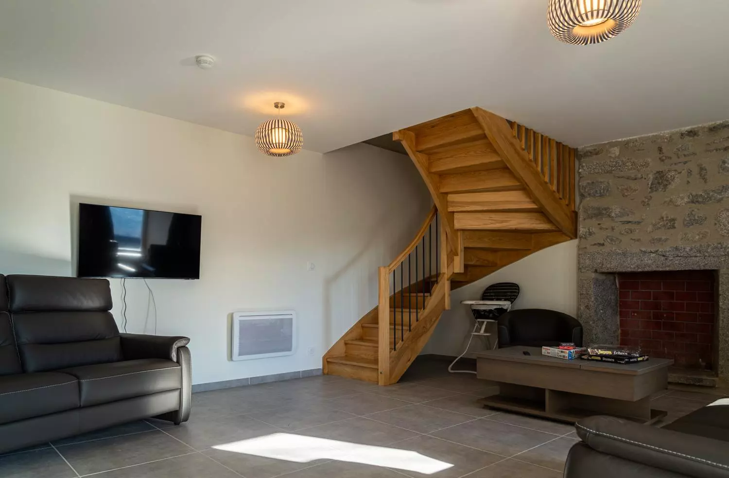 Au 1er étage : 2 chambres avec dans chacune 1 lit double en 140 , 2 chambres avec dans chacune 2 lits en 90, une salle d'eau, une salle de bain et wc indépendant.