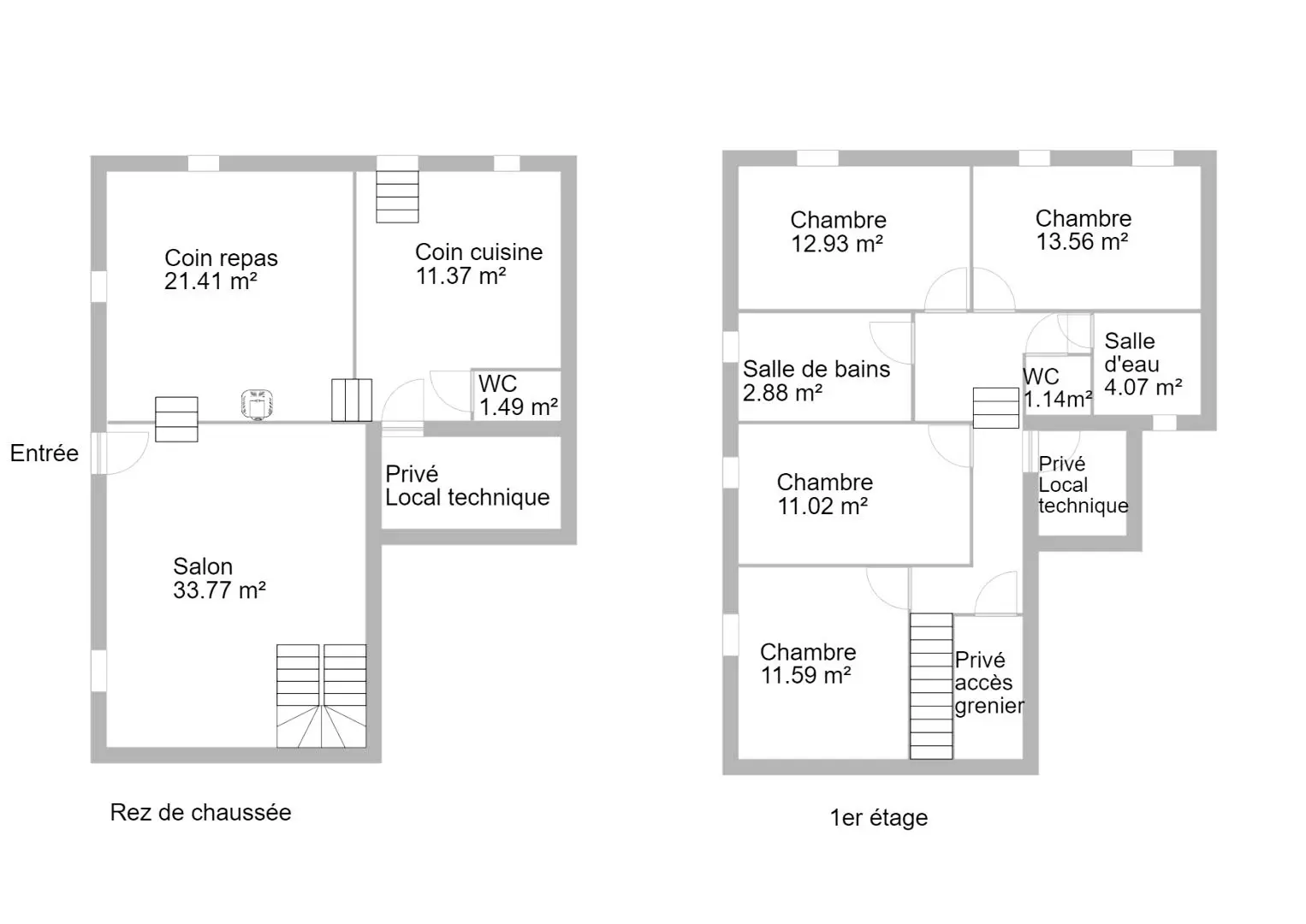 Au rez-de-chaussée, séparés par quelques marches : cuisine avec coin repas, salon, 1 wc indépendant.