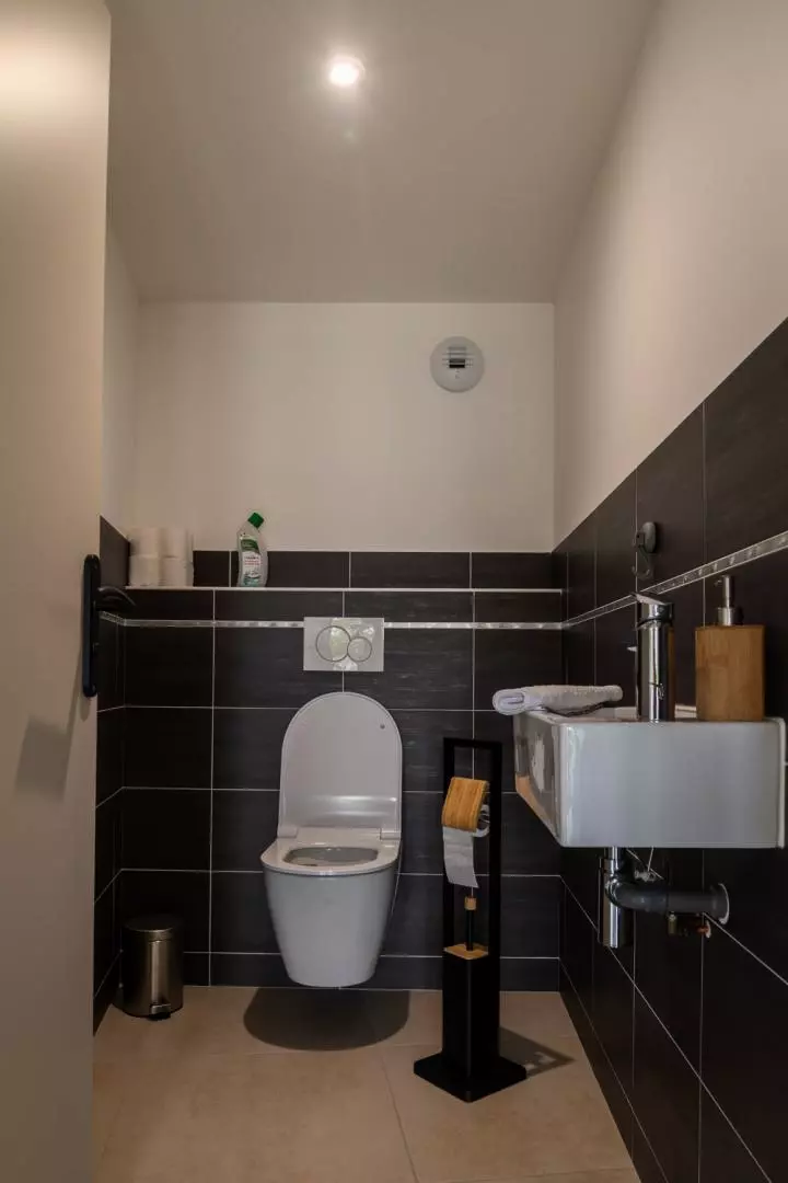 1er étage : 2 chambres avec lit double (160/200) et 1 chambre avec 2 lits simples jumelables (2x80/200), 1 salle d'eau et 1 WC indépendant.