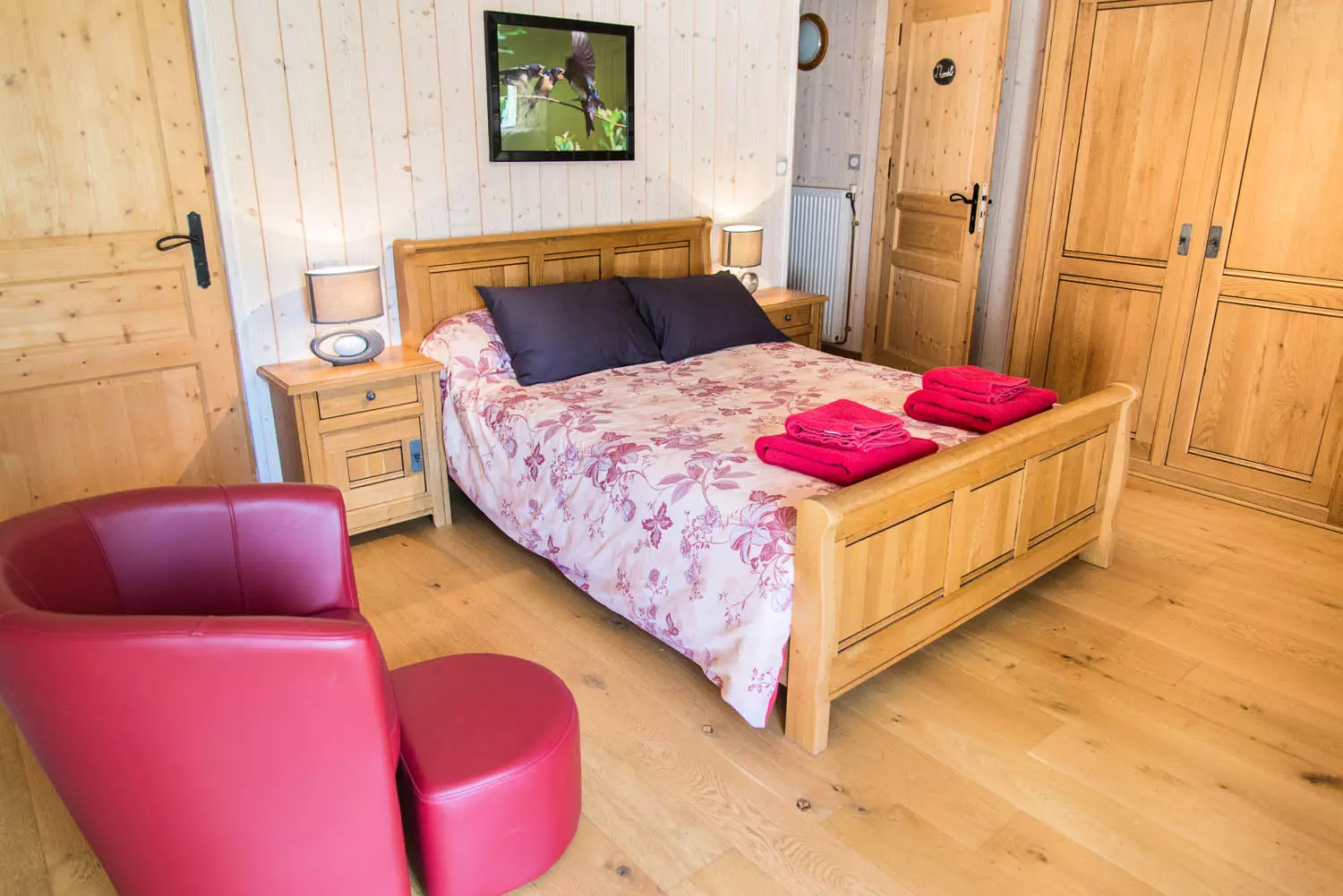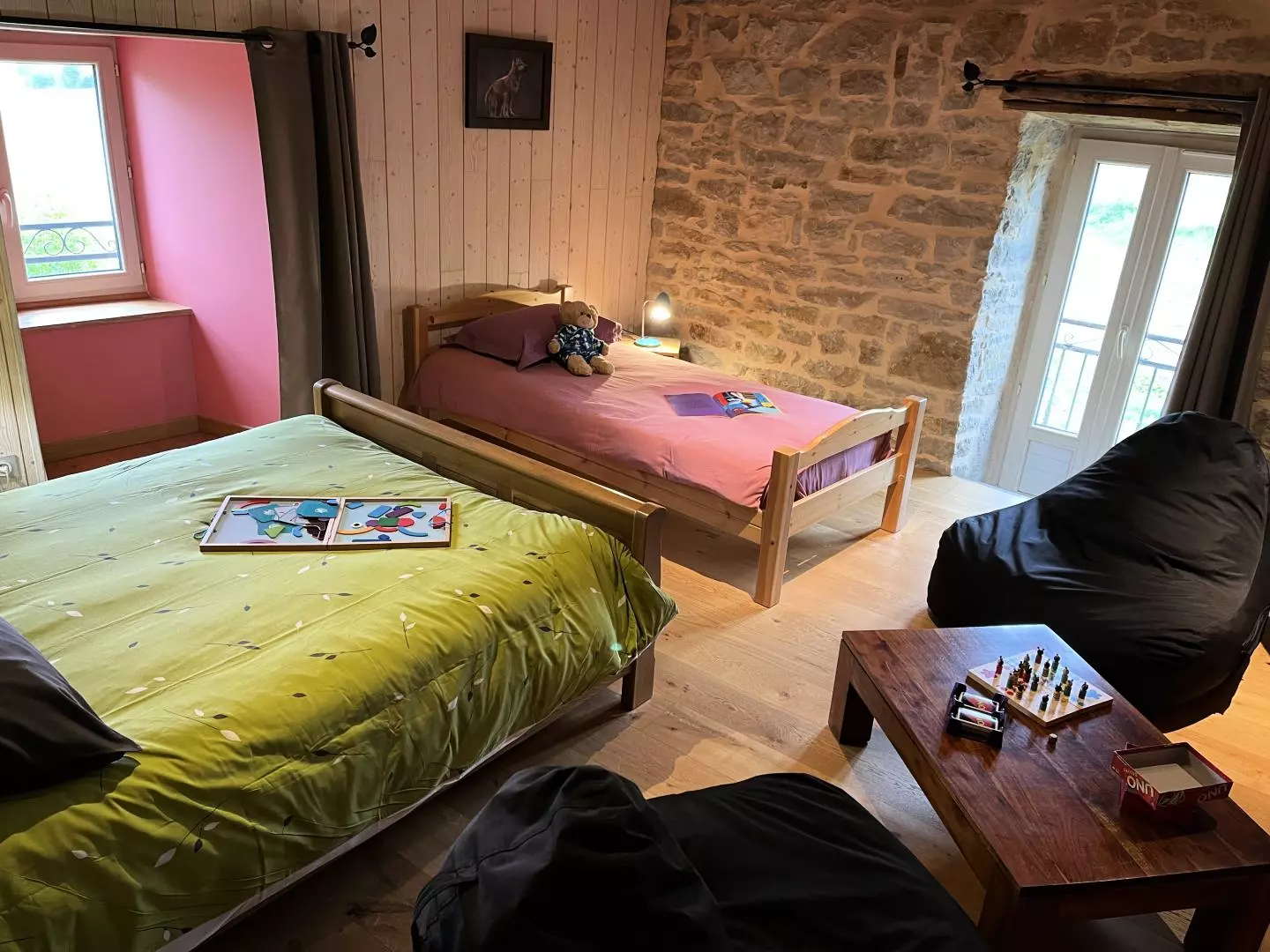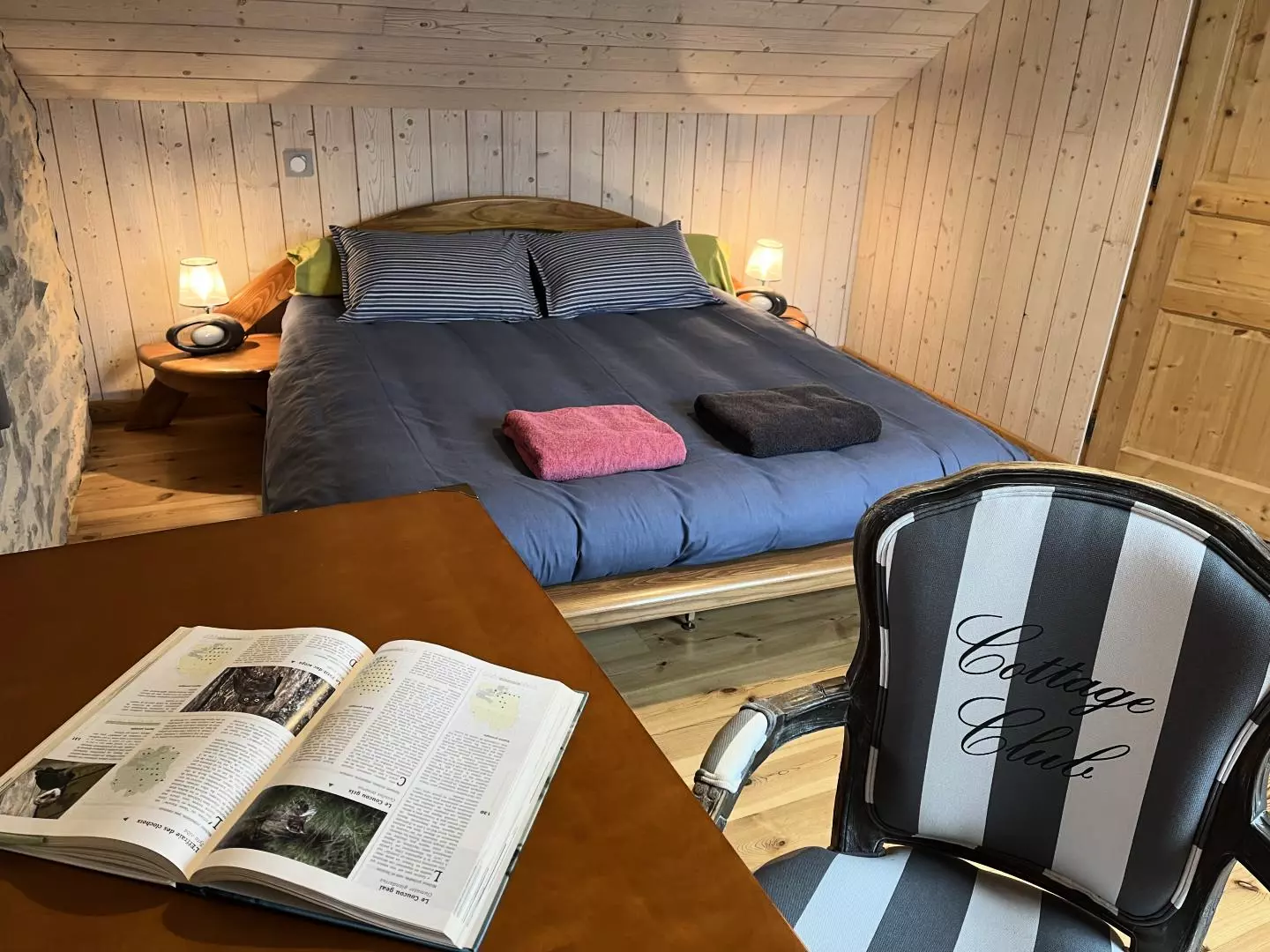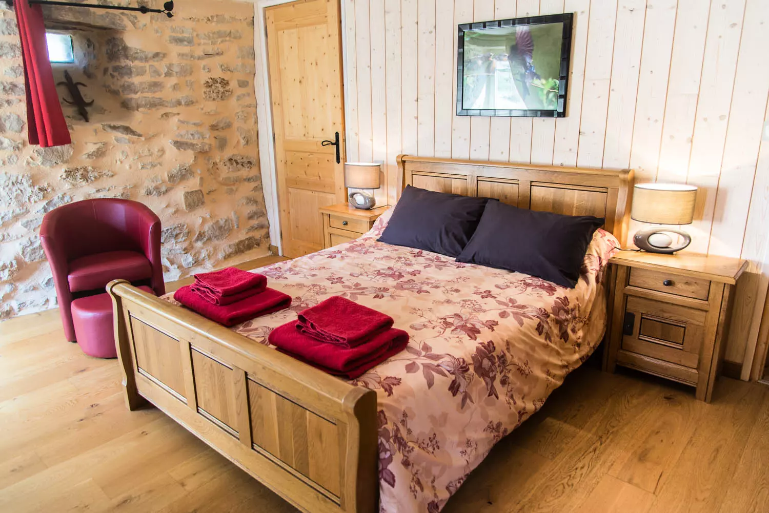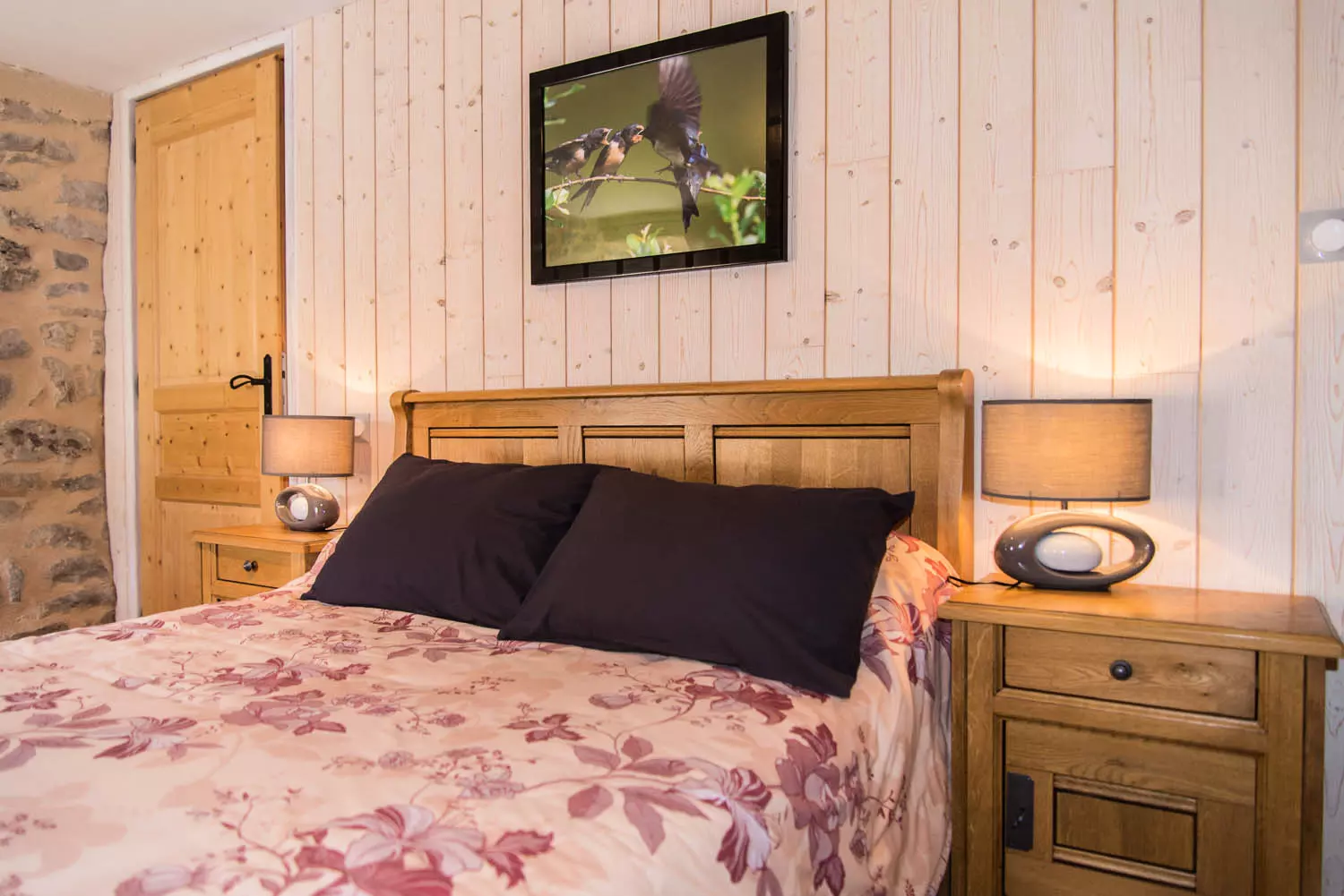 A demi-niveau inférieur : du salon, quelques marches mènent vers une chambre avec 1 lit en 140 et 1 lit en 90 (télévision et lecteur DVD). De là, à l'étage inférieur, se trouve une chambre avec 1 lit en 160 et salle d'eau privative, wc indépendant