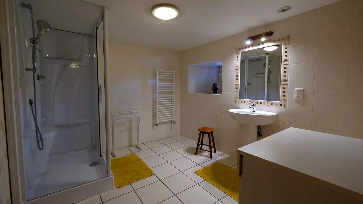 Au rez-de-chaussée : cuisine américaine (lave-vaisselle, micro-ondes, four, grille-pain, robot, 2 réfrigérateurs/congélateurs), séjour (poêle à bois, bois fourni), espace salon (télévision, lecteur DVD, accès WIFI), 1 coin bureau, 1 chaise bébé, buanderie (lave-linge, sèche-linge), WC indépendants.