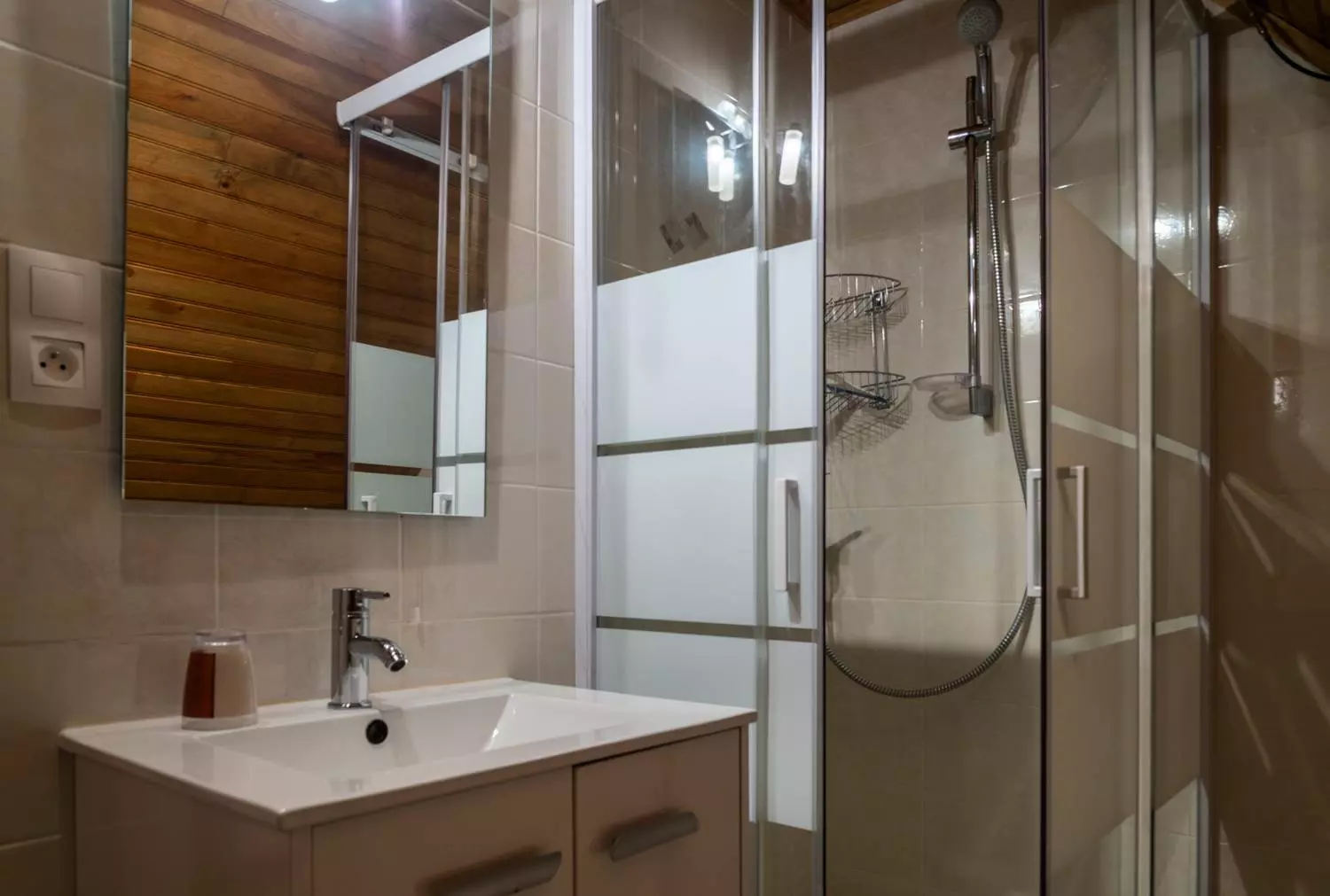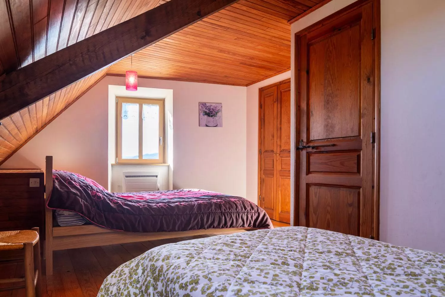 1er étage : 1 chambre (1 lit 2 places et lit parapluie), 1 chambre (2 lits 1 place) et salle d'eau avec WC.