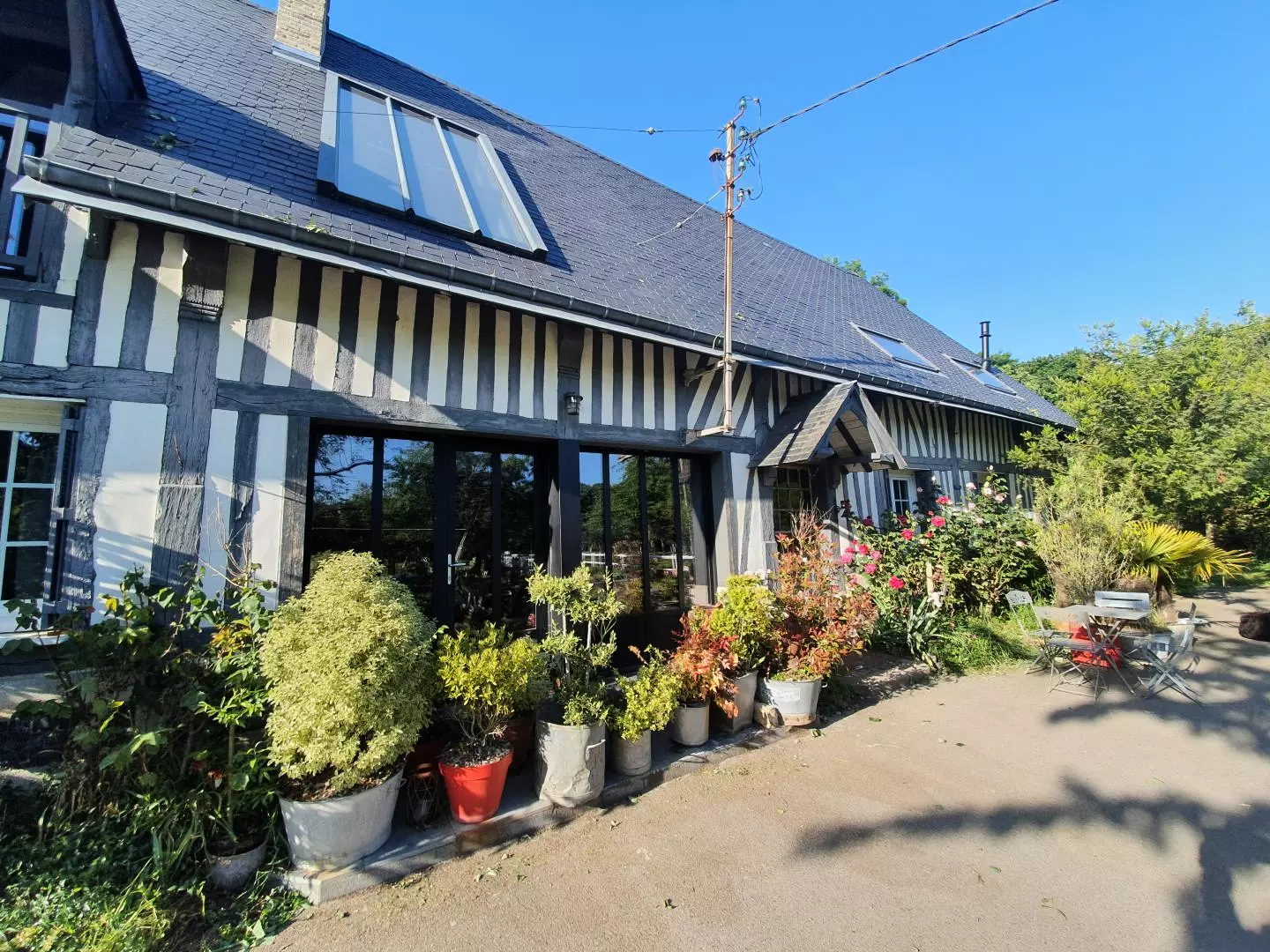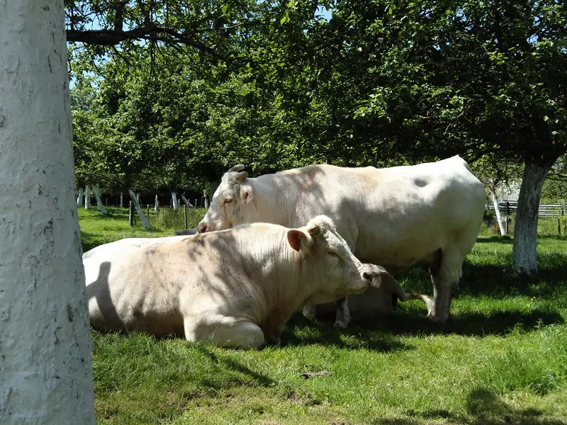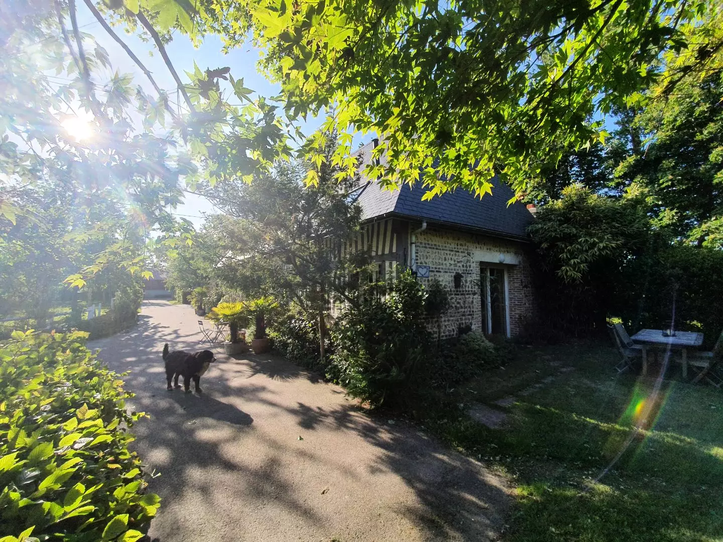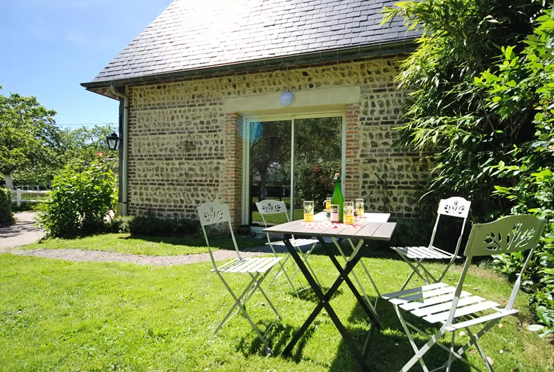 Ce gite à colombages, mitoyen à la maison des propriétaires, dispose d'un jardin privatif non clos de 100m2. Au sein d'une exploitation agricole, où le propriétaire pourra vous faire visiter la ferme (fabrication...
