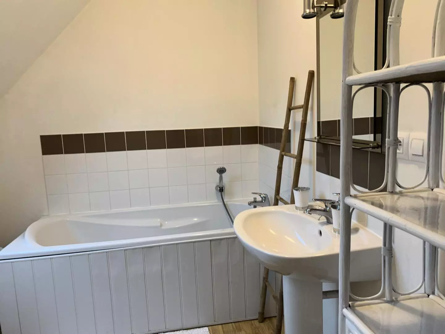 - grand palier avec bureau pour télétravail,table, coffre avec ivres, Le gîte dispose de la wifi gratuite et de la fibre .