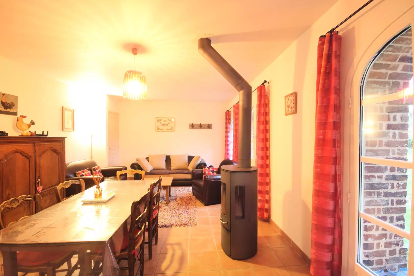 Idéalement situé à mi-chemin entre Dieppe et Rouen (30 mn) découvrez cette jolie région normande riche en paysages, jardins et patrimoine propice aux randonnées (orée forêt Eawy). Rez-de-chaussée : cuisine à l'américaine à l'équipement très complet, coin repas et salon avec poêle à bois. A l'étage : 1 chambre (1 lit 2 personnes 160x200cm), 1 chambre (2 lits 1 personne, lit bébé, chaise haute), espace bureau et couchage futon en mezzanine, salle de bains avec BAIGNOIRE BALNEO, salle d'eau avec douche, wc indépendant. Chauffage électrique en sus. LITS FAITS, LINGE DE TOILETTE ET DE MAISON MIS A DISPOSITION, MENAGE INCLUS. Taxe de séjour. Propriétaire ne souhaitant pas que l'on fume dans le gîte.