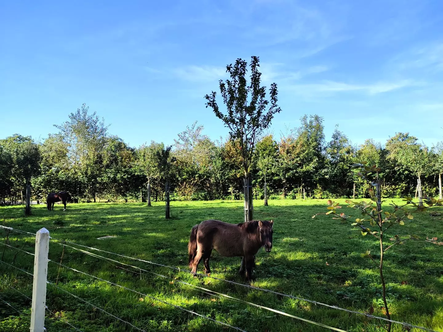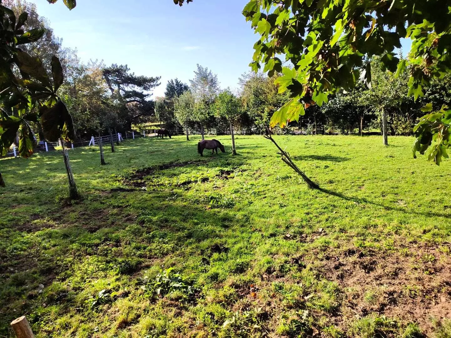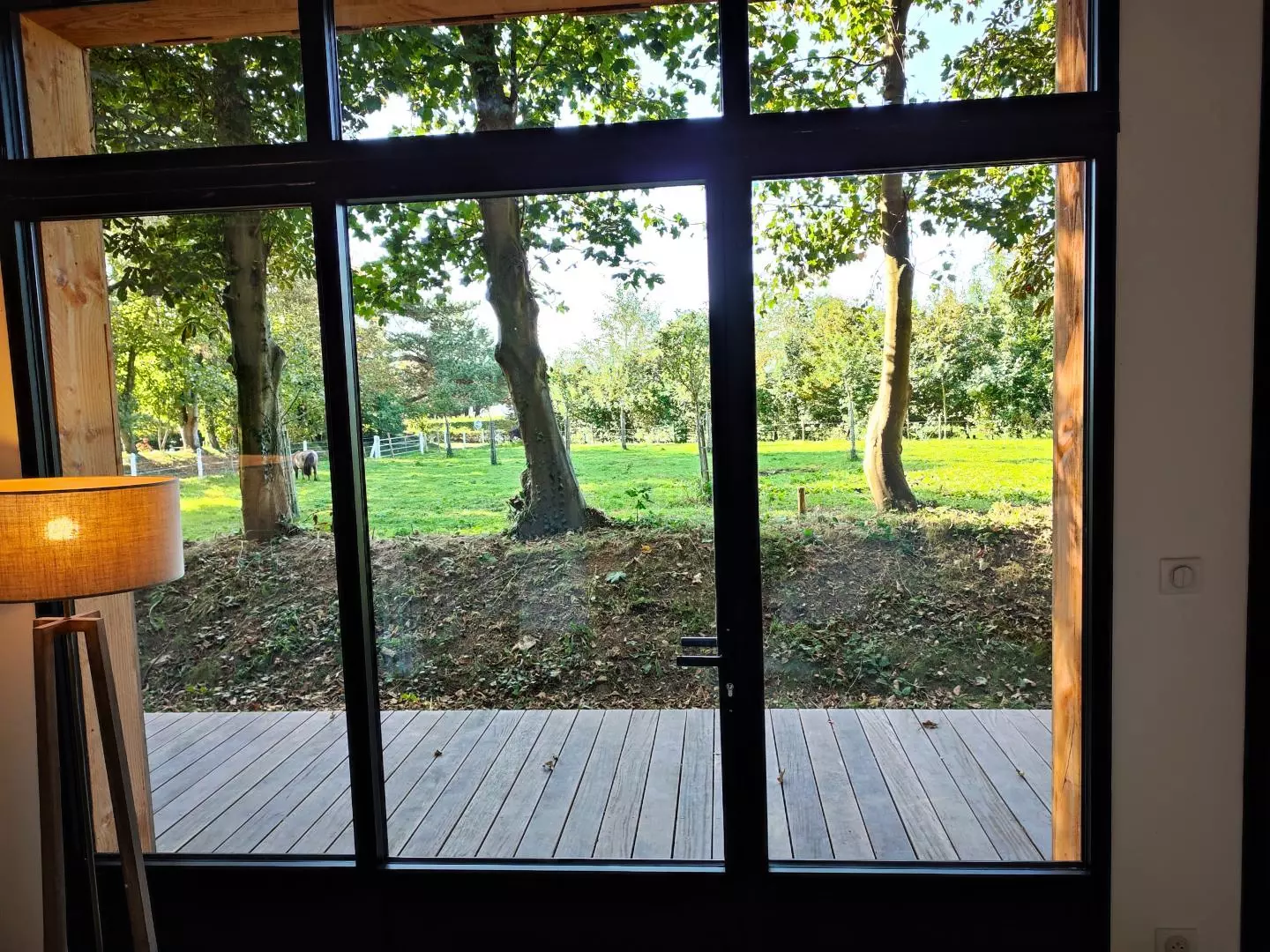 Depuis la pièce de vie, vous profiterez d'une vue directe sur un pré et pourrez apercevoir les ânes et les poneys présents sur la propriété.