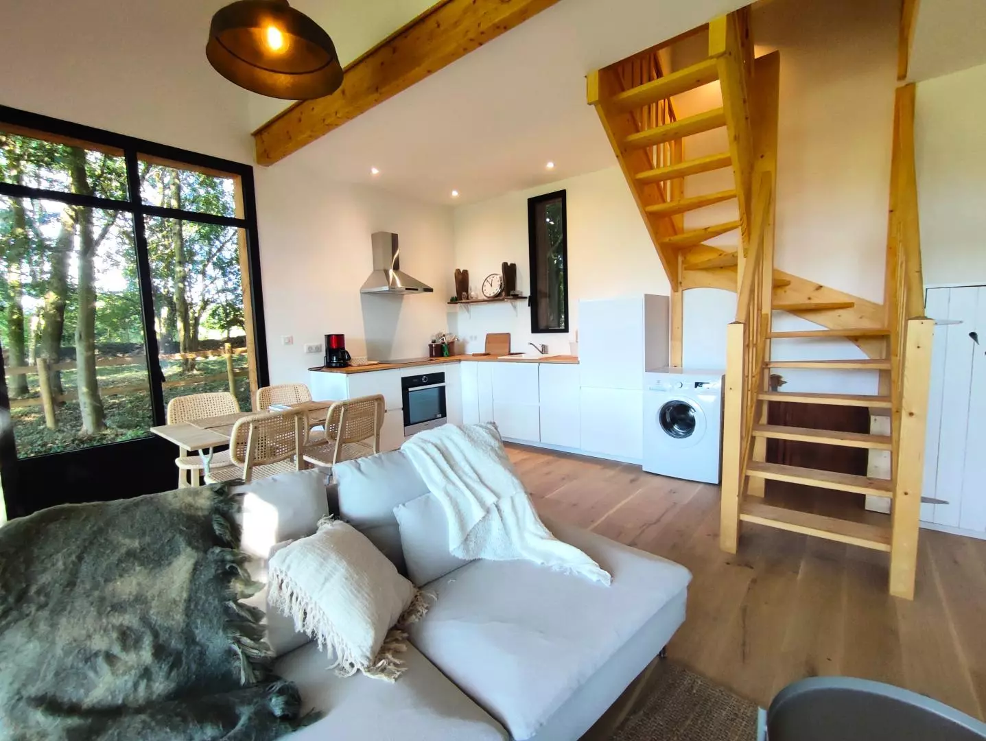Situé au cœur d'un sous-bois, ce gîte contemporain offre un cadre naturel préservé, parfait pour se ressourcer.